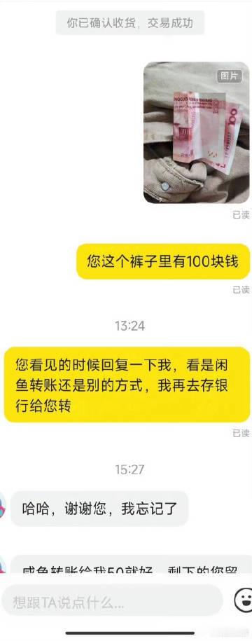 买到的裤子里居然有100块钱 [哆啦A梦害怕]