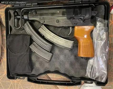 VZ 。 61škorpion是1950年代后期在捷克斯洛伐克开发的紧凑,选择性的冲锋枪。 Škorpion主要专为军官,特种部队和安全人员而设计,是冲锋枪和个人防御武器的独特融合。它在使用32 ACP(7.65×17mm褐色SR),后来有其他口径出现,, 意大利恐怖分子用该枪刺杀首相,朝鲜特工标配武器