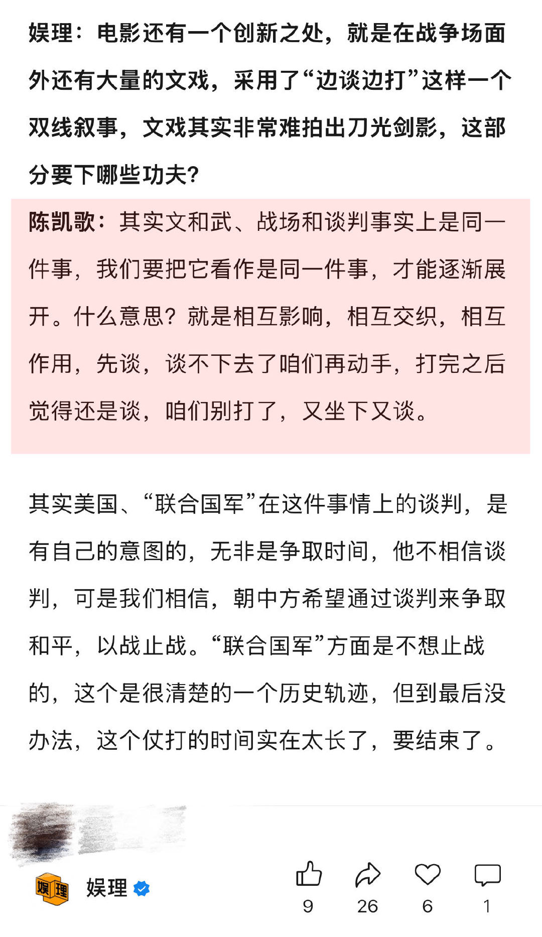 陈凯歌说没想到张子枫从艺16年了陈凯歌谈战争中的女性力量谈及《志愿军:浴血和