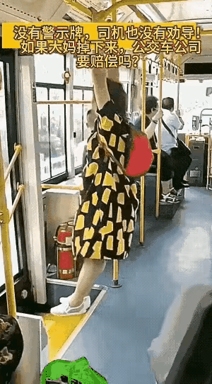 有人说没有警示牌,司机没有劝导,大妈摔下来公交车要赔偿。 笑话,那么多乘客司机不累死才怪,如果要树警示牌,怎么树?不要把头伸出窗外,不要把手伸出窗外,不要在车上织毛衣,不要……要树的太多了,光牌子一车都放不完。 一个成年人,公共场合的规则还要提示,白活了一把年纪,摔了算自己对身体不负责任,没有赔偿一说。 你们说说,这情况该赔钱吗?