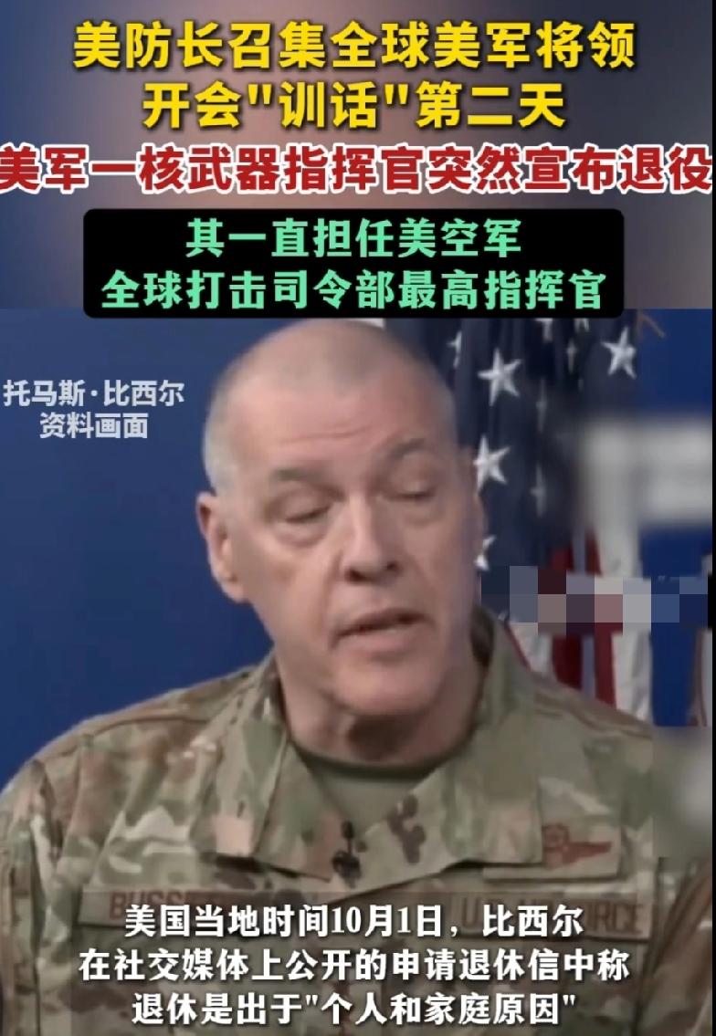 核武指挥官突然退役! 防长“不爽就滚”的狠话刚落 这离职哪是“家庭原因”。 掌管全美空基、陆基核力量的上将,前脚刚被撤回副参谋长提名,后脚就赶上防长的“最后通牒”大会。台上放话“不认同就辞职”,台下沉默第二天,他就递了退休信。 别信什么“个人原因”的官话,这更像专业军人的无声反抗。核武指挥讲究的是沉稳专业,哪容得下“听话优先”的政治施压。一边是“民兵Ⅲ”导弹要超期服役到2050年的硬难题,一边是搞仪容、体能的“新指令”,谁能甘心? 所谓的“整顿军纪”,更像在拆军队的专业根基。手握核按钮的岗位,靠的是敬畏心不是服从性。