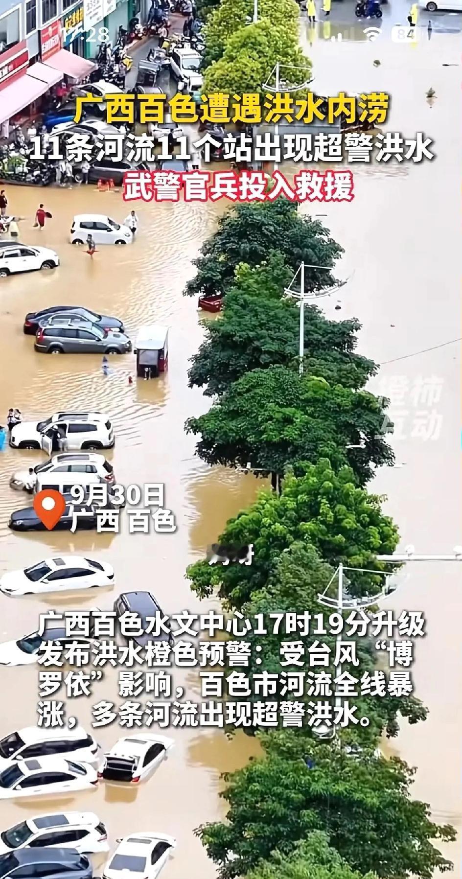 国庆广西百色人民正困在水牢里!广西百色的洪水,狠得像头野兽!房屋泡在黄泥汤