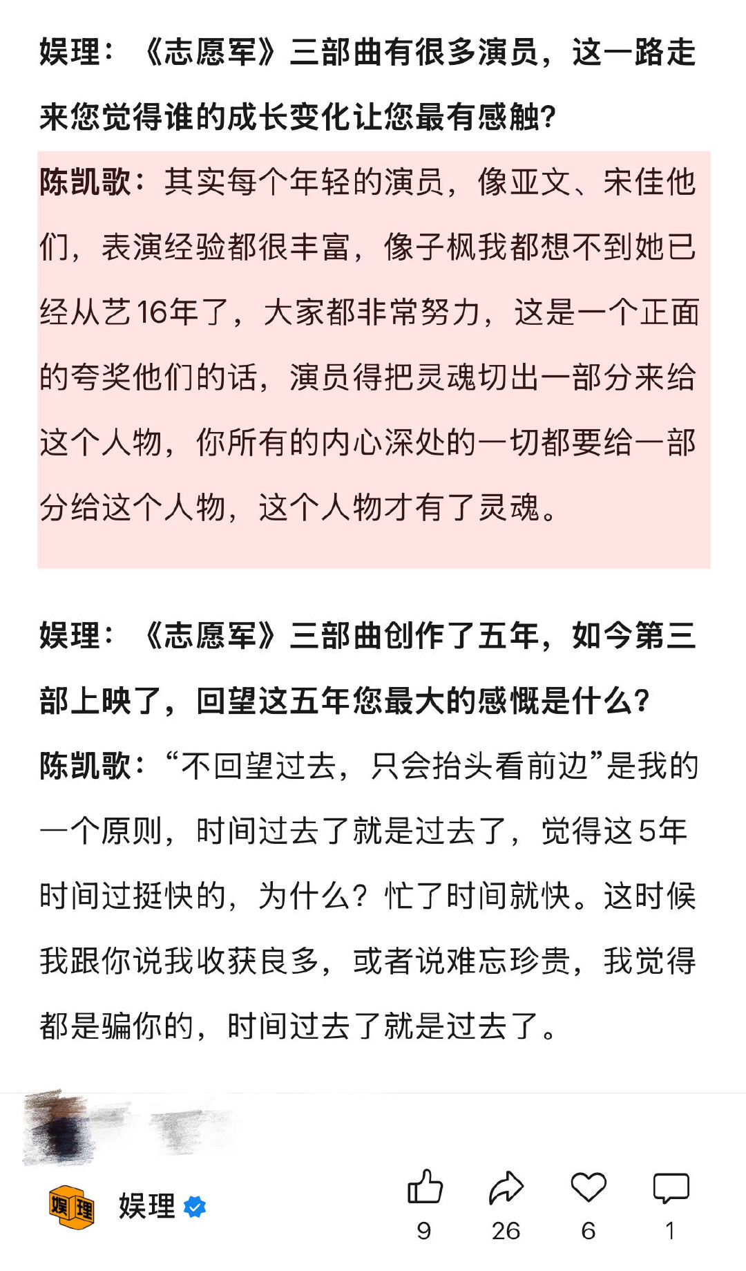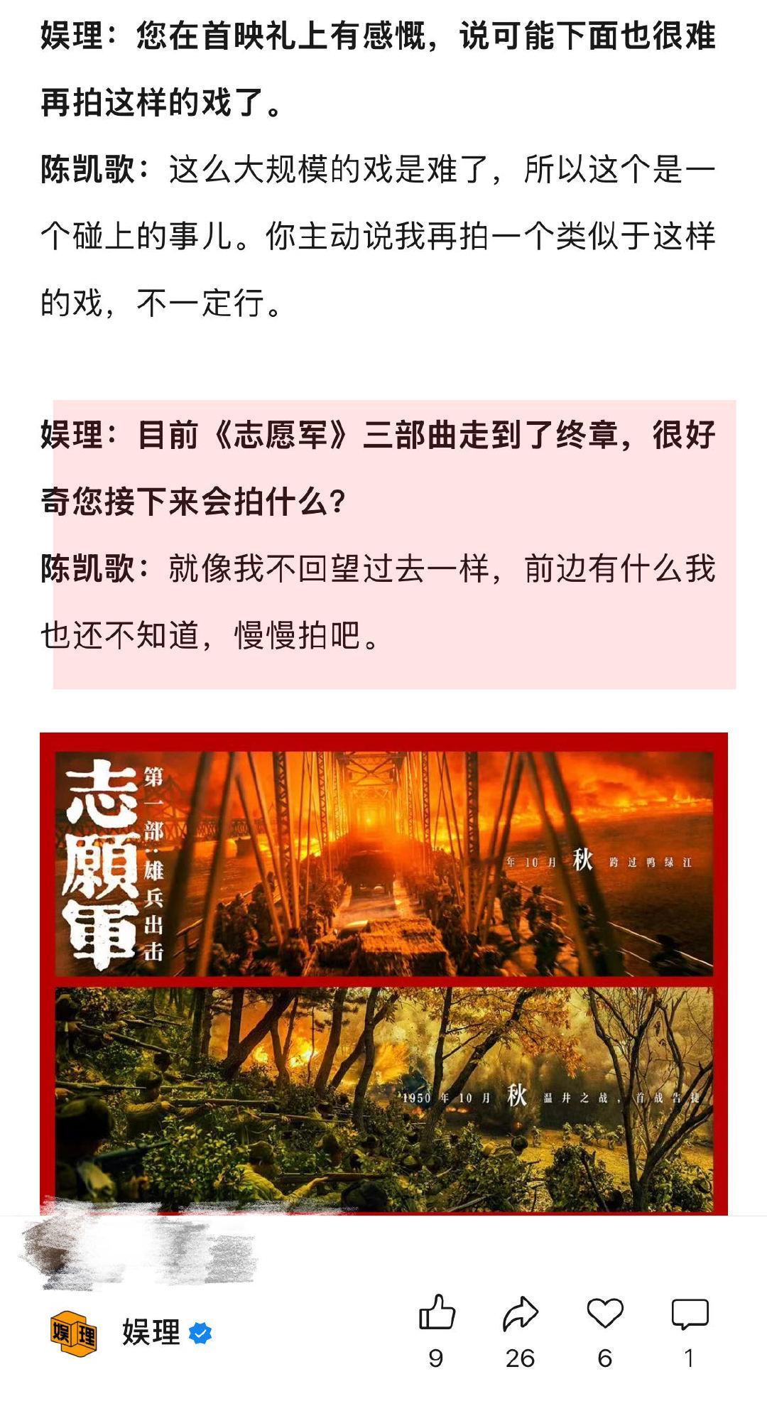 陈凯歌说没想到张子枫从艺16年了陈凯歌谈战争中的女性力量谈及《志愿军》三部曲