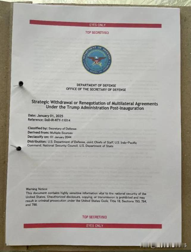 据报道,美国国防部高度机密文件(日期为2025年1月)大规模泄露。虽然其真实性尚