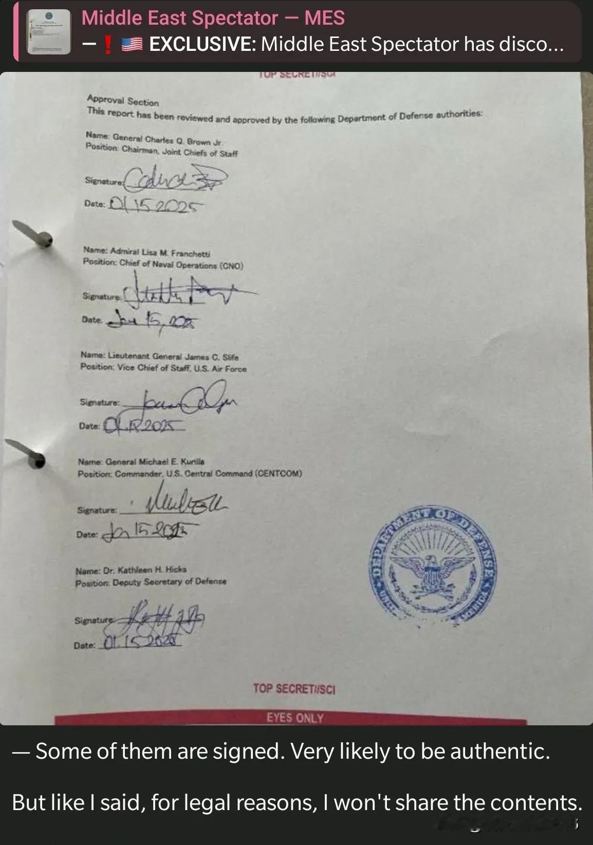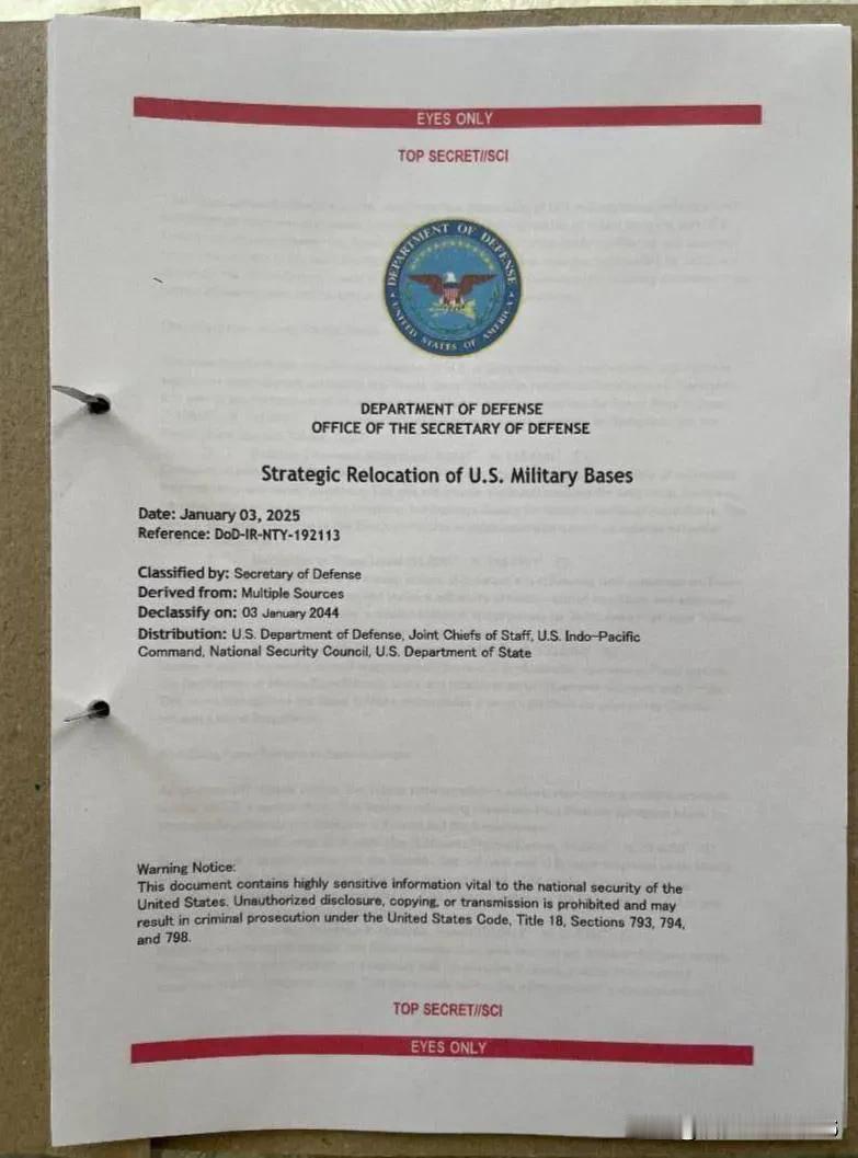 突发新闻:一份日期为2025年1月的美国政府高度机密文件在Telegr