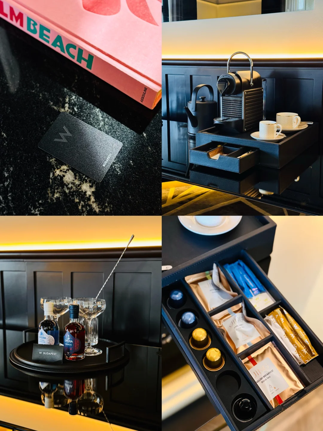 酒店整体设计以对称美学为主,推开窗就是布达佩斯歌剧院。这次钛金卡+套房券,给到了歌剧院景观的奇幻套房。房间以黑色为主线,装饰、配色大 胆前卫,却和古典建筑融合得很自然,随手一拍都是大片。