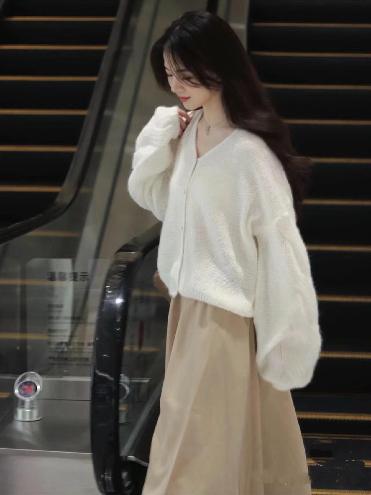 温柔冬日多款穿搭紫白相搭粉白色系穿搭粉色毛衣搭配白色长裙