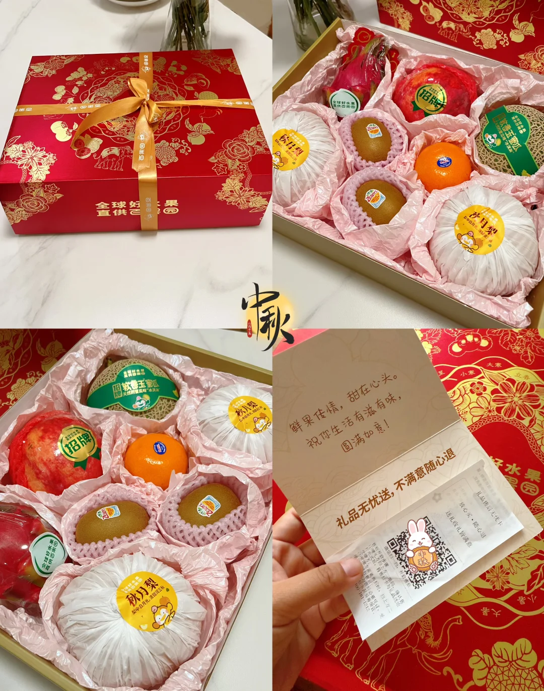更惊喜的是礼盒里还有百果园今年全新首推的【礼品无忧送】售后卡,如果亲友对口味、品相不满意也能自主申请售后,完全不用让送礼的人“尴尬”,既保住了自己的体面,也让收礼的人舒心,这份细致真的太戳人了!