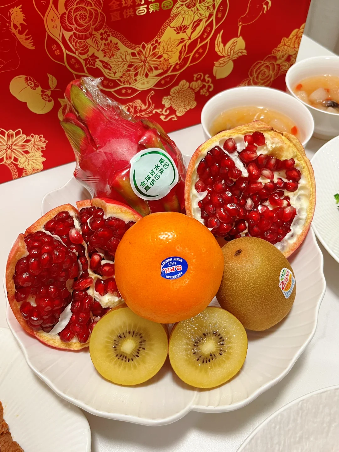 水果拼盘:石榴、火龙果、奇异果、澳洲柑