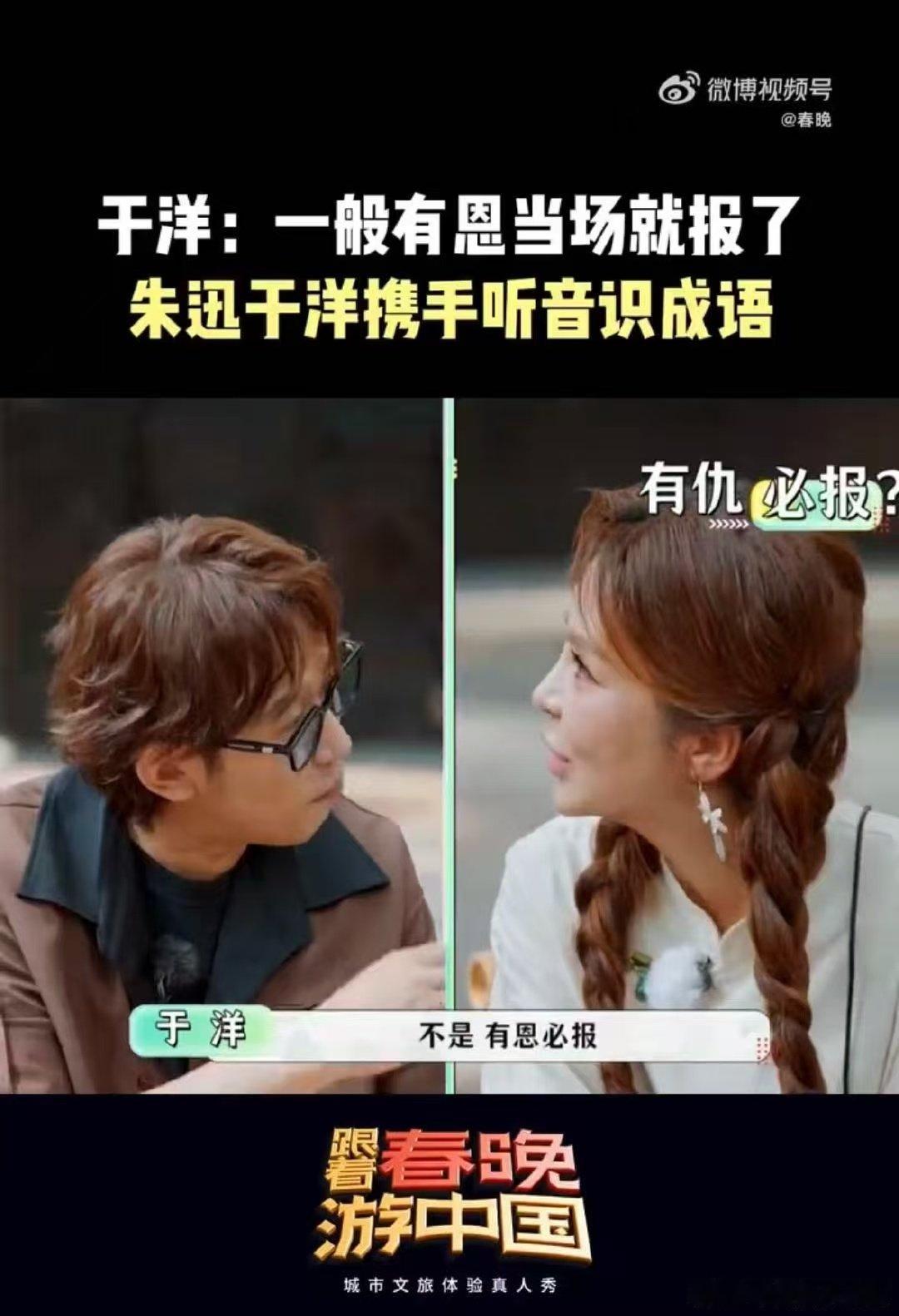 于洋有恩当场就报了 跟着春晚游中国 春晚里于洋这波操作太赞了!跟朱迅听音识成语,“你帮我我必帮你”,出来“混”主打一个互帮互助,太圈好感了