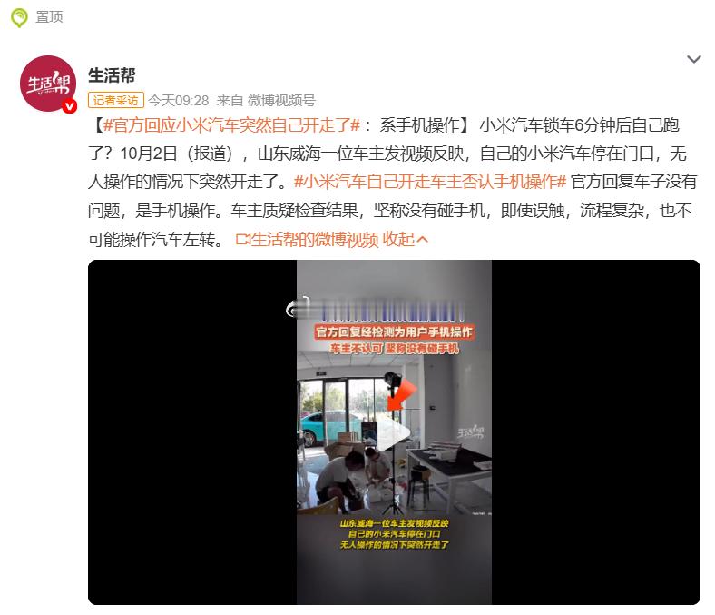 官方回应小米汽车突然自己开走了 国庆节到了,都在走亲访友四处游玩,难道汽车就不能想家心切,就不能自动回娘家工厂里看看孩子姥姥?[疑问]