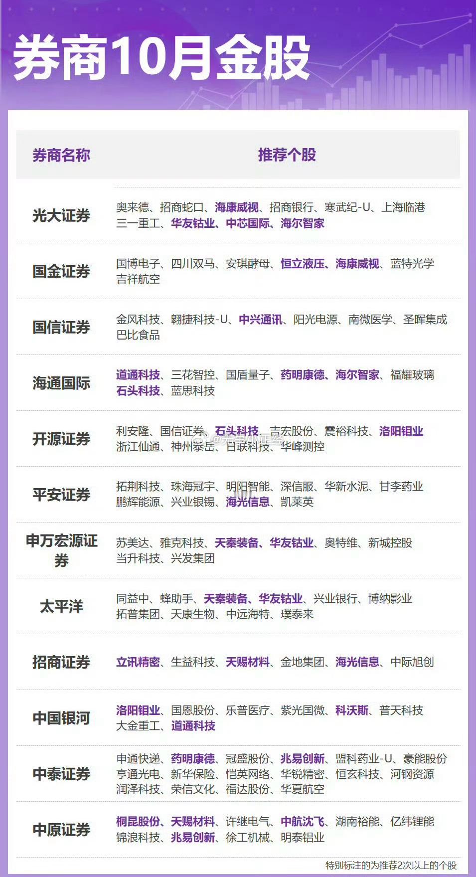 券商A股10月金股出炉…
