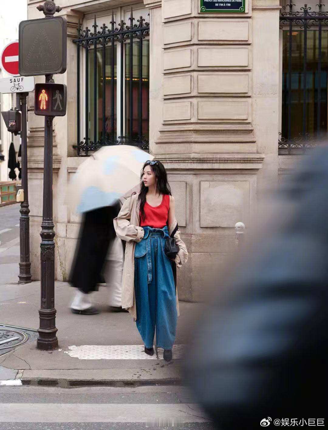 陈都灵巴黎街拍陈都灵的巴黎街拍,搭配LOEWE春夏系列,牛仔与色彩的碰撞让她瞬
