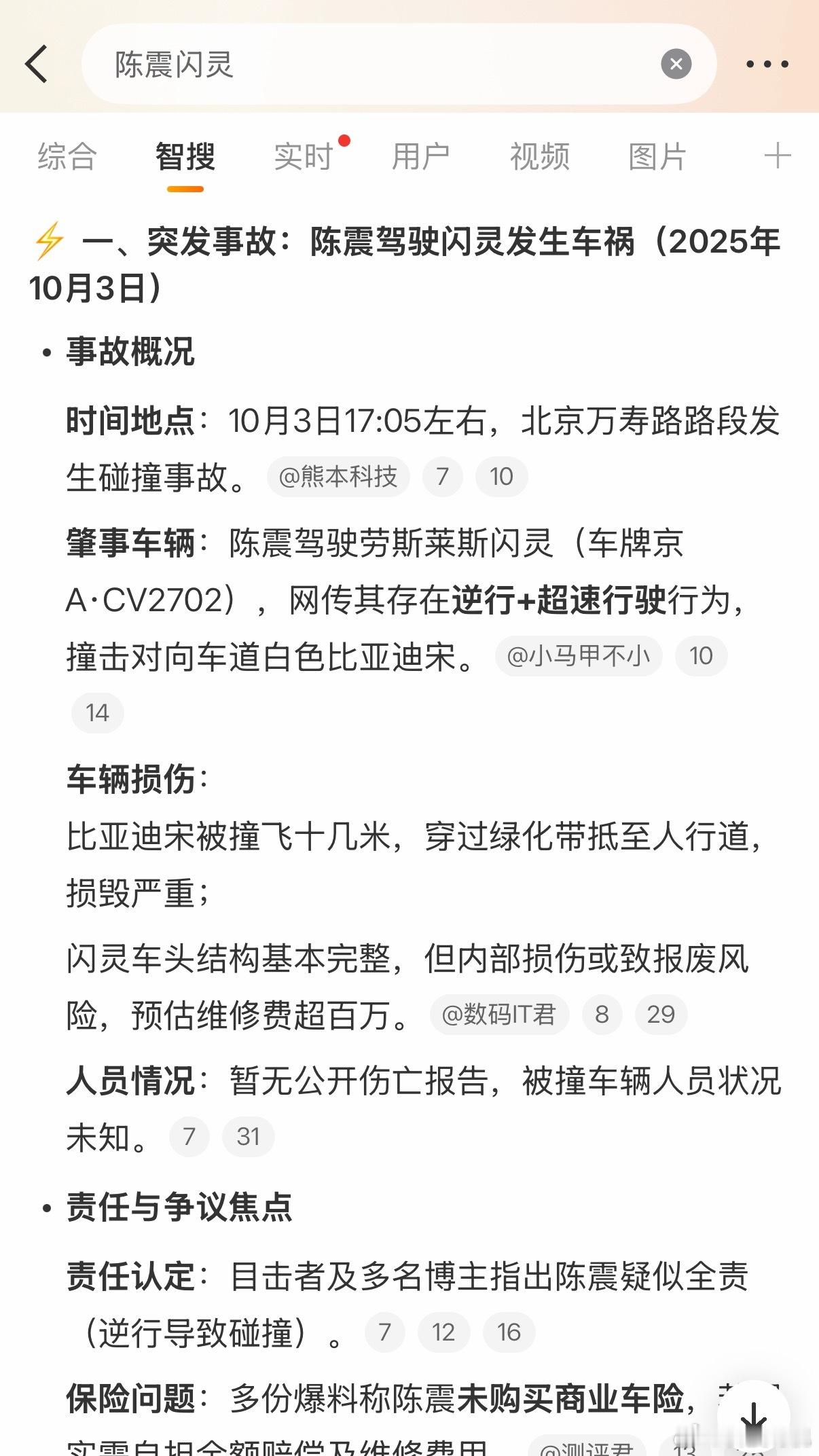 陈震闪灵网上说是陈震逆行把比亚迪给撞了,还说没买保险[允悲]