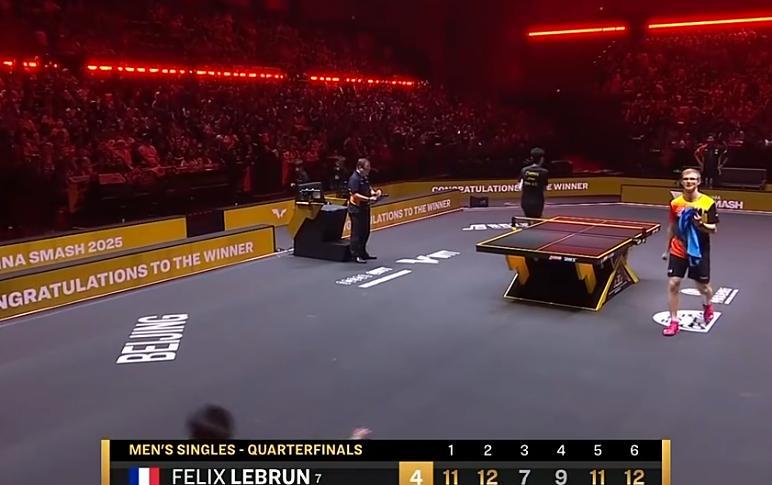世乒联大满贯赛男单四分之一决赛,陈俊菘不敌勒布伦无缘四强!北京时间2025年10月3日,世乒联大满贯赛中国站男单四分之一决赛,中国选手陈俊菘对阵法国选手菲利克斯-勒布伦,陈俊菘在前两局输掉的情况下连扳两局,将比分追至2-2,随后第5局大比分落败,关键的第六局,陈俊菘顶住压力连续挽救对方赛点,但最终还是以10-12遗憾落败,大比分2-4不敌对手,无缘四强!#世乒联大满贯赛##陈俊菘##勒布伦#