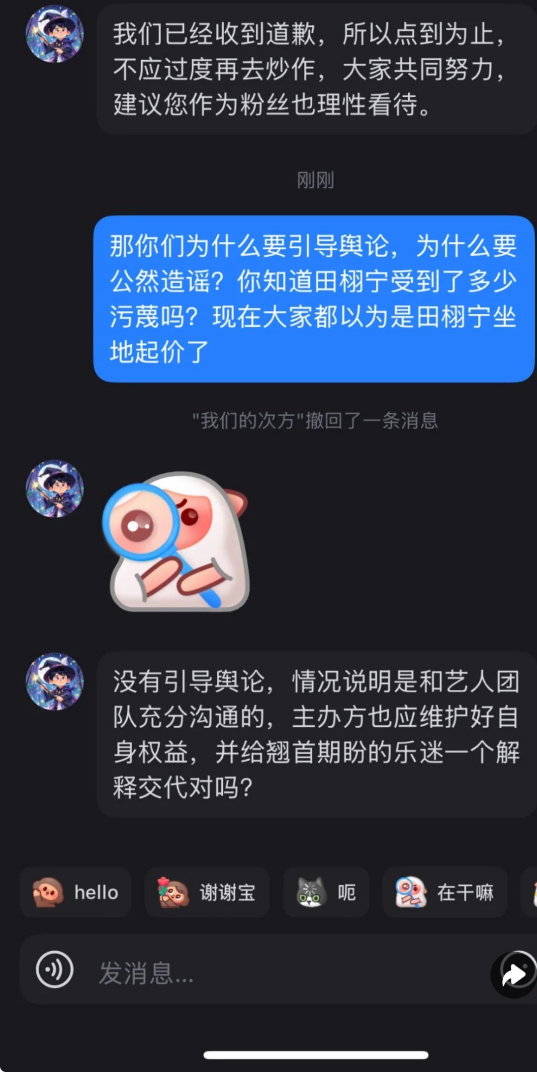 坐地起价的艺人究竟是谁呢,这已经很清晰明白了吧,主理人都这么说了,别再甩锅给梓渝了,毕竟人家都说了,不信的话可以让经纪公司合理维权,人家也接受。