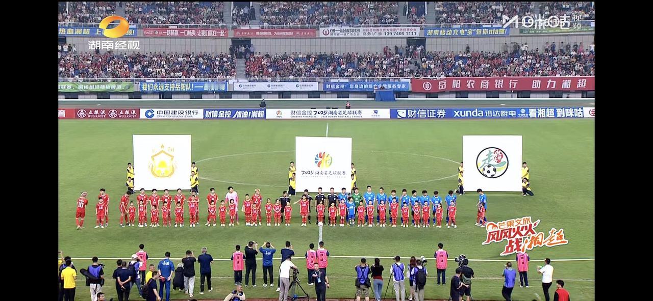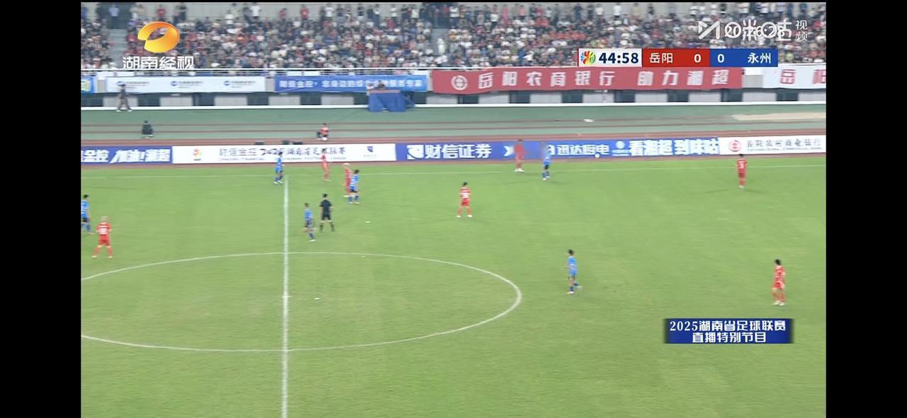 我永州和岳阳的球迷今晚是极尽“顽梗”之能事啊!😂 目前暂时0:0 上半场前25分钟,是岳阳队持续高压的,基本上可以说是在我永州队半场上演攻防对练。 甚至一度有点像上一场我们在主场,似湘西面对我们的疯狂进攻,而表现出严密的防守 中间我永州队与对方形成僵持阶段,持续了8、9分钟 最终上半场高速的攻防转换降临,在临近上半场哨响前,双方都在专注、认真的情况下,不断的攻向对方的球门,但都无功而返!(上半场岳阳多达9个角球) 所以,暂时保持了平局