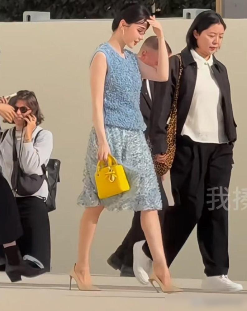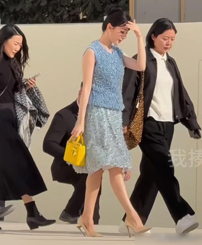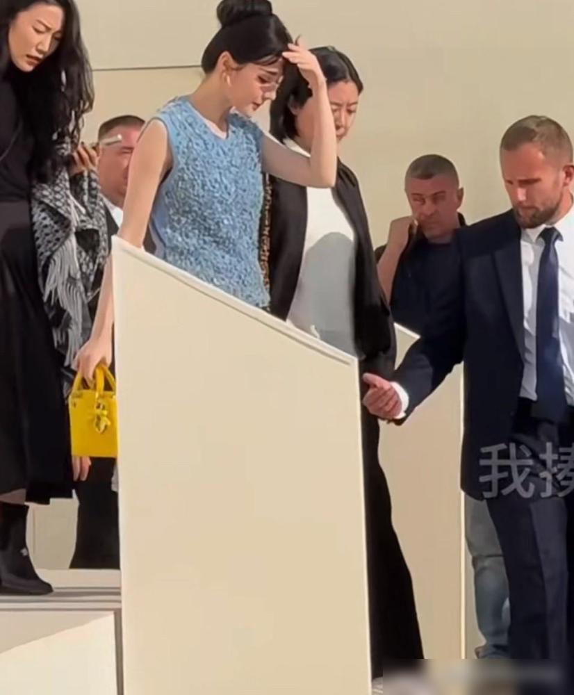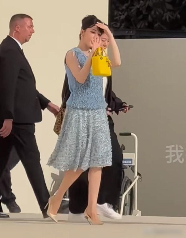 10月2日,迪丽热巴,鞋跟断了!!! 当时她正看秀,鞋跟突然断了,却全程踮着脚
