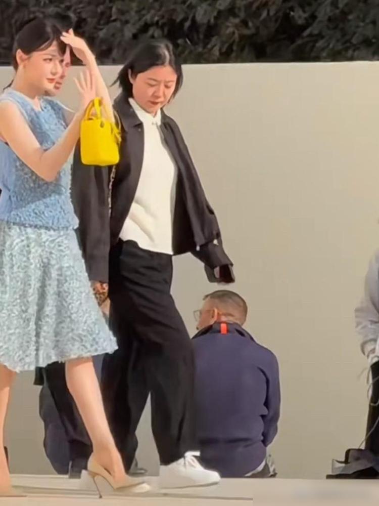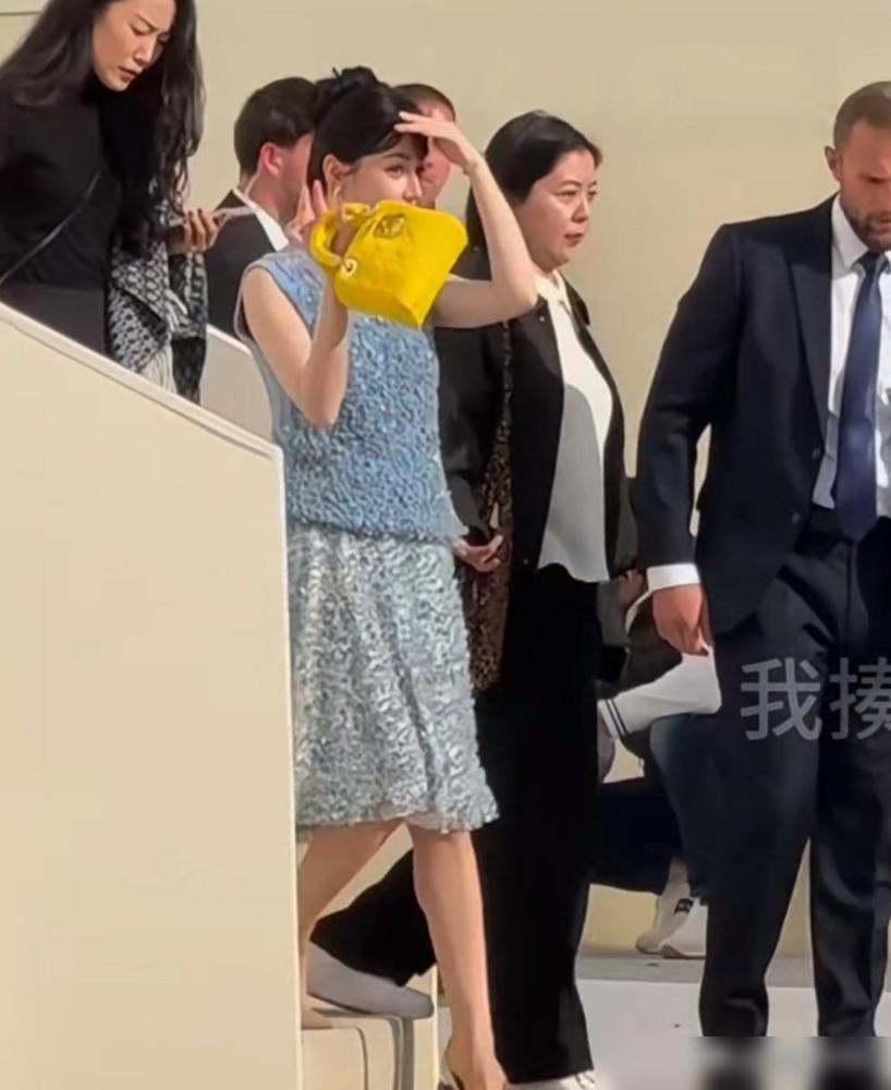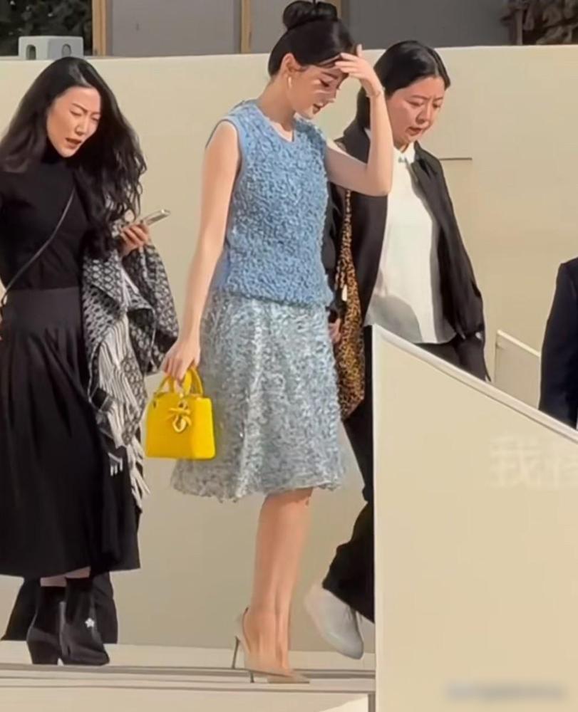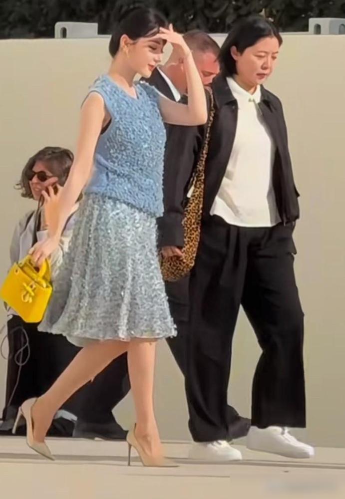 10月2日,迪丽热巴,鞋跟断了!!! 当时她正看秀,鞋跟突然断了,却全程踮着脚