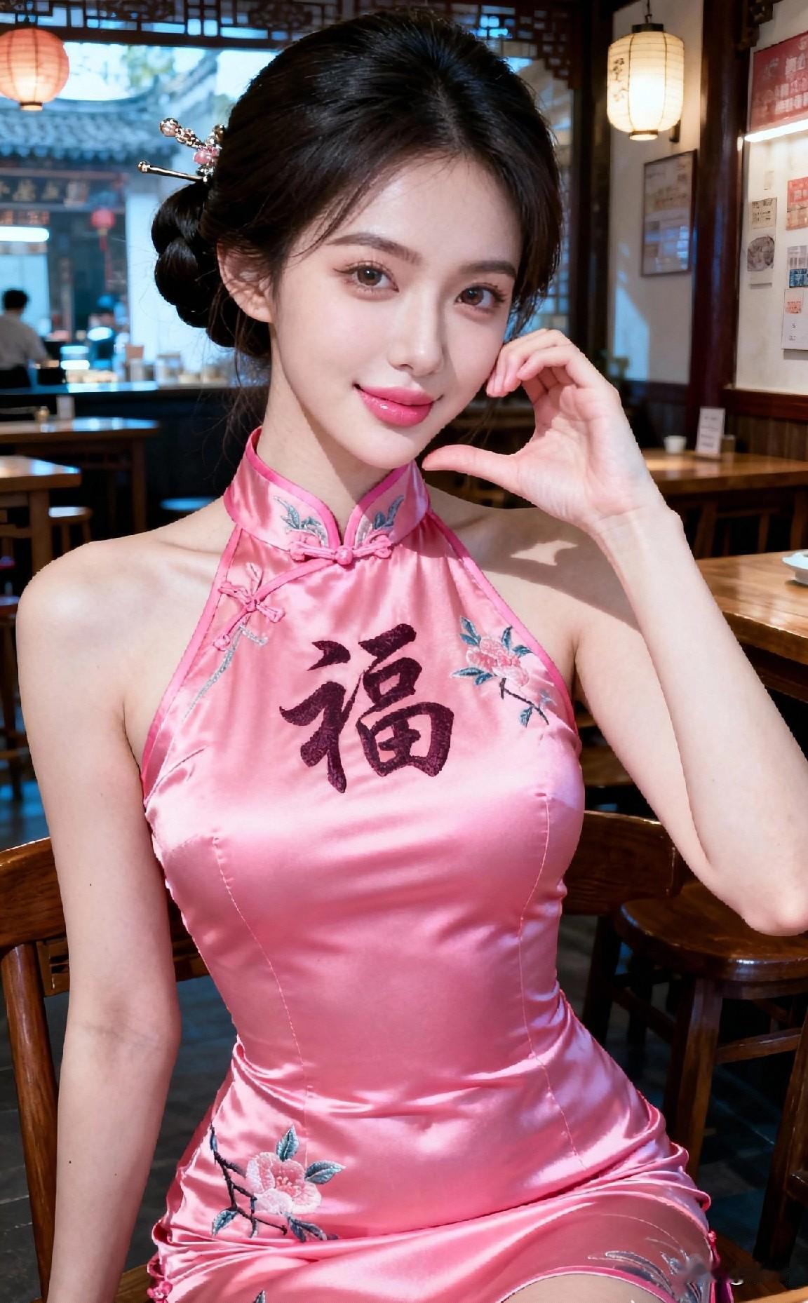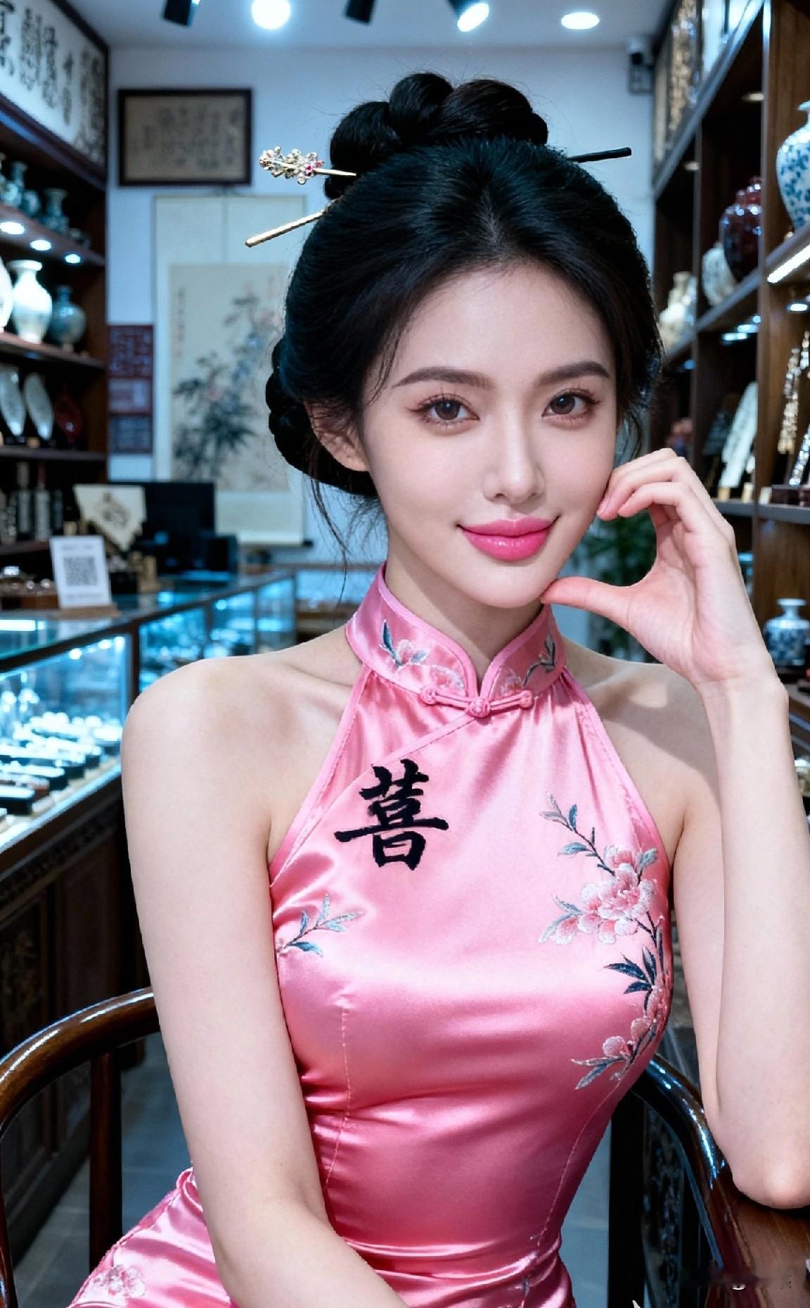 《温婉绮梦》一袭粉缎旗袍,绣满芳华。发髻簪花,红唇含韵,在中式婚房的雅致里,她
