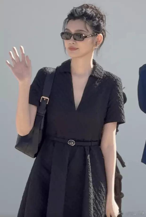 分享娱乐[超话]分享娱乐奚梦瑶身着黑色连衣裙,戴着墨镜,超模气场全开,造型又美