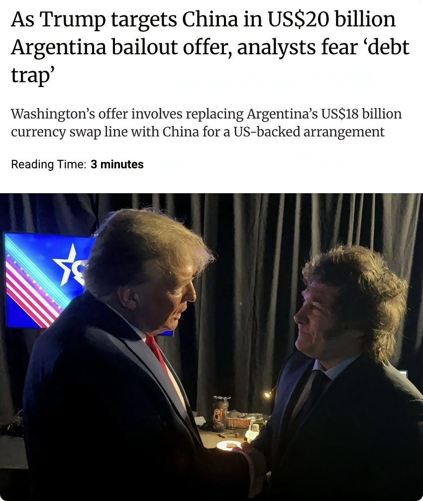 外媒:美国提出以200亿美元援助阿根廷,条件是阿根廷取消其与中国180亿美元的货币互换协议。 该货币互换协议自2009年建立,帮助阿根廷管理外汇储备、支付进口费用及偿还国际债务。 中国学者警告,若阿根廷屈服于美国压力,切断与中国关系,将自身受损最大。 美国这招拿钱换关系的操作,看似是给阿根廷递了一颗糖,实则更像裹着利益的枷锁。200亿美元援助听着数额诱人,可附加的条件却藏着满满的霸权逻辑——要想拿到援助,就得先斩断与中国的经济合作纽带。这种非此即彼的施压,本质上是把阿根廷当成了大国博弈的棋子,逼着对方在经济利益和外交自主之间做选择,完全无视了阿根廷的实际需求和发展利益。 再看中阿之间的货币互换协议,可不是简单的金钱交易,而是实实在在的雪中送炭。从2009年至今,这份协议就像阿根廷外汇储备的稳定器,每当该国面临外汇短缺、无力支付进口商品或偿还外债的困境时,人民币的流动性支持总能帮它渡过难关。小到民众日常所需的消费品,大到工业生产的原材料,很多都依赖这份协议保障进口;就连应对国际市场汇率波动带来的风险,这份协议也是阿根廷手中重要的缓冲垫。可以说,它早已深度融入阿根廷的经济运行,成为其稳定发展的重要支撑。 美国之所以执着于让阿根廷取消这份协议,说白了就是见不得中国与其他国家开展正常的经济合作。这些年,美国为了维护自己的霸权地位,动不动就用援助、制裁等手段干预别国内政,逼着盟友或伙伴选边站。可阿根廷不是美国的附属品,它有自己的经济考量和发展诉求。200亿美元援助或许能解一时之急,但失去与中国的货币互换协议,意味着阿根廷将失去稳定的外汇补充渠道,未来面对国际经济风险时,会变得更加被动。一旦外汇储备告急,进口受阻、债务违约的风险都会陡增,最终受伤的还是阿根廷的普通民众和整体经济。 中国学者的警告绝非危言耸听。这些年,中国与阿根廷的合作一直秉持平等互利的原则,从不附加任何政治条件,无论是货币互换、基础设施建设,还是农产品贸易,都是基于双方的实际需求,实现了共赢。反观美国的援助,往往带着苛刻的附加条件,看似给了好处,实则是为了掌控对方的经济命脉,让其成为自己全球战略的马前卒。阿根廷要是真的屈服于压力,放弃与中国的合作,无异于捡了芝麻丢了西瓜,不仅会失去一个可靠的合作伙伴,还会让自己陷入更艰难的经济困境。 在全球化的今天,国与国之间的合作本该是自由且平等的,不该被霸权主义裹挟。阿根廷站在这个十字路口,选择的不仅是一份协议的去留,更是未来发展的道路。是接受带着枷锁的援助,还是坚守自主的合作,考验着这个国家的智慧与勇气。毕竟,真正的发展,从来都不是靠依附他国,而是靠建立在平等与信任基础上的共赢合作。 各位读者你们怎么看?欢迎在评论区讨论。 阿根廷获美援 阿根廷中国合作
