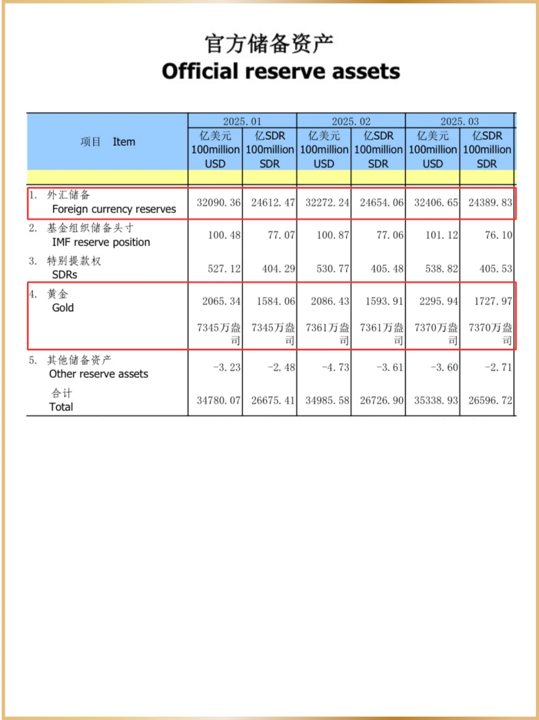 其中储备资产表单中有详细的黄金储备数量和价值,如果翻看历史,央行最近启动阶段性增持黄金是从2024年11月开始的,今年前3个月增持了35万盎司黄金。