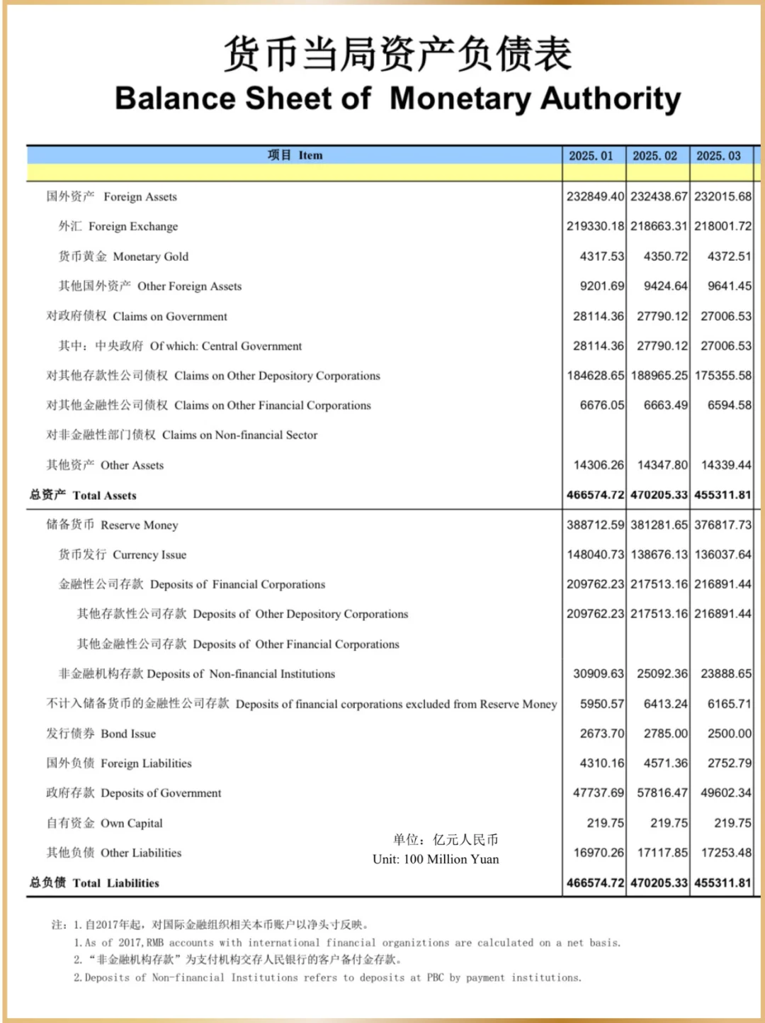 但是该表单中的黄金价值和资产负债表中并不一致,目前没有特别官方的说法,有一种比较可信的是资产负债表中的黄金价值是按照历史价格计价的,所以存在较大的低估。大家可以看看后续央行购金的动作,这个数据可以做个参考,去年就抄央行作业的同学基本都喝到汤了。