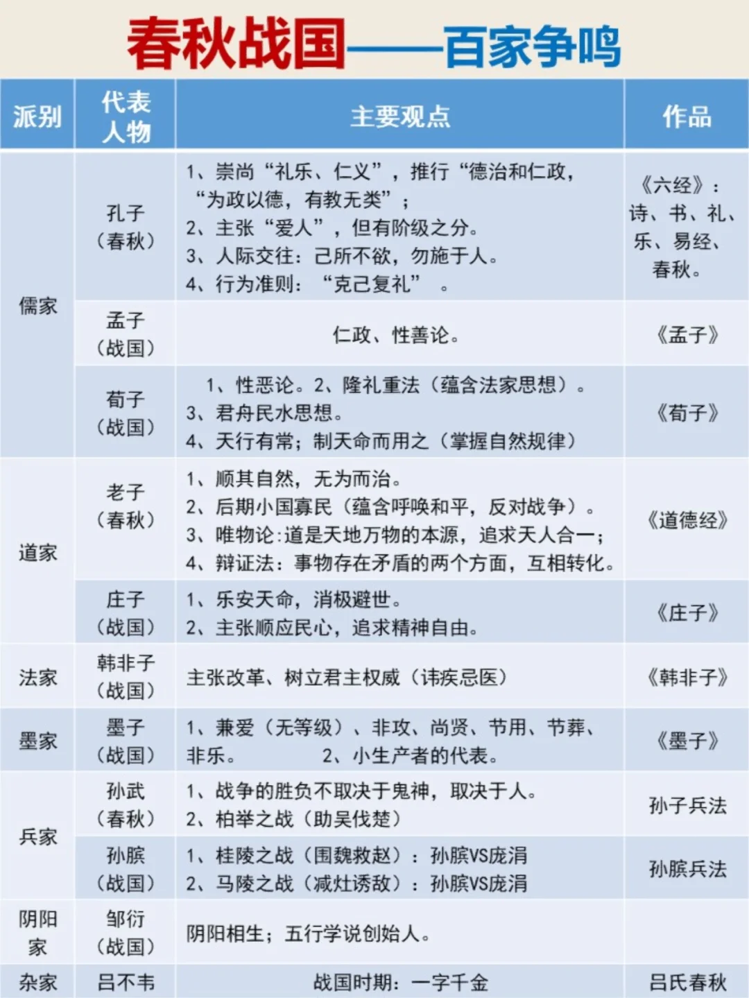 ☀️☀️大佬辈出,各种子:孔、孟、老、庄、荀、墨、韩非、孙。