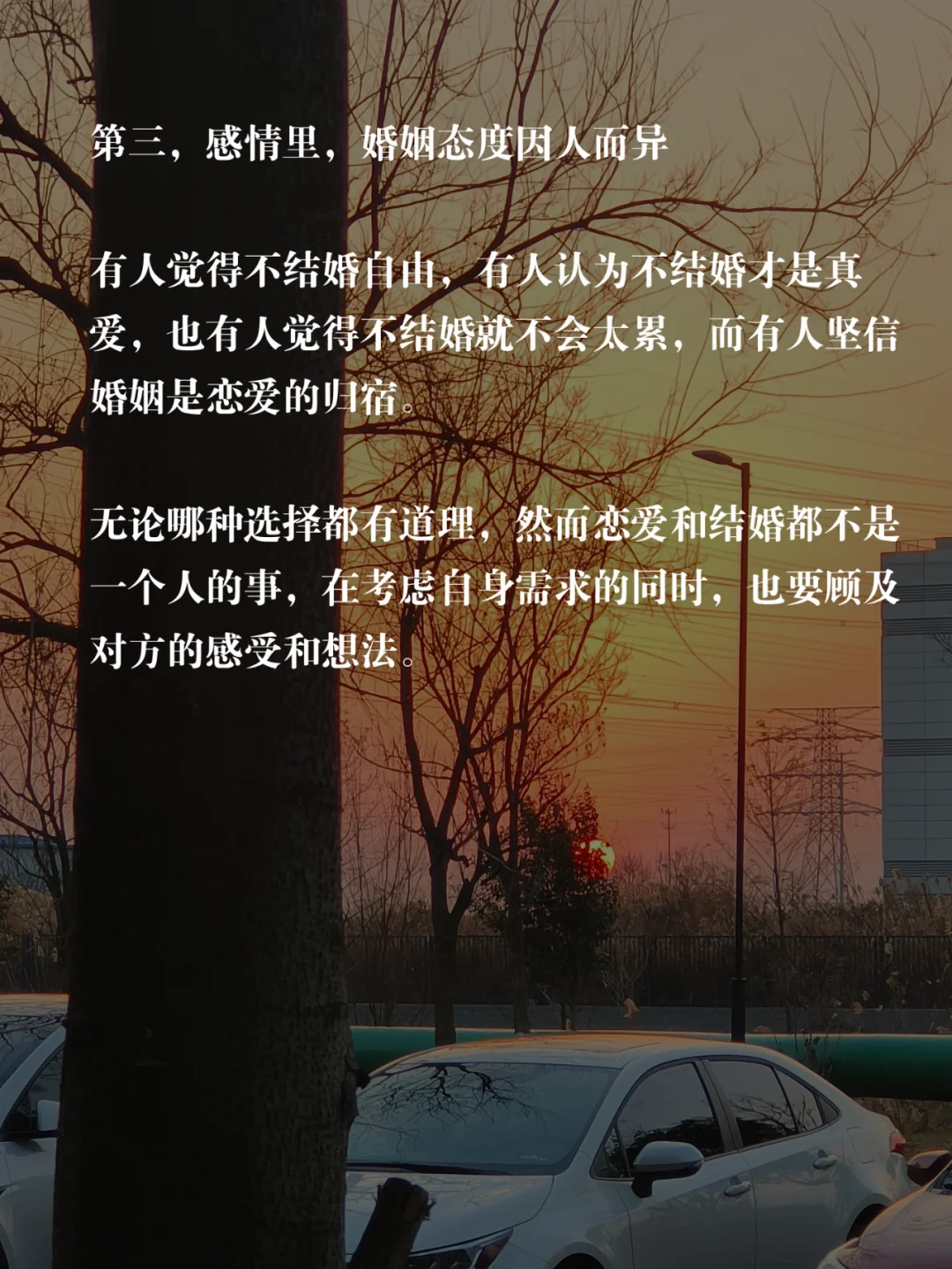 有人觉得不结婚自由,有人认为不结婚才是真爱,也有人觉得不结婚就不会太累,而有人坚信婚姻是恋爱的归宿。无论哪种选择都有道理,然而恋爱和结婚都不是一个人的事,在考虑自身需求的同时,也要顾及对方的感受和想法。强者思维 拒绝内耗 婚姻情感 结婚 恋爱 所以结婚的意义到底是什么 婚姻 恋爱技巧