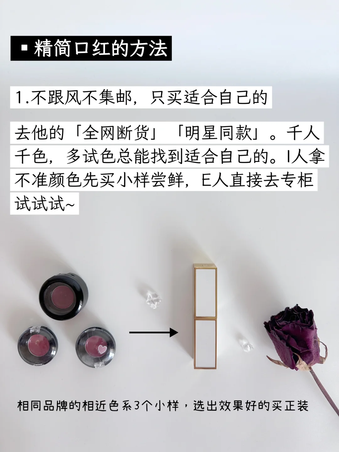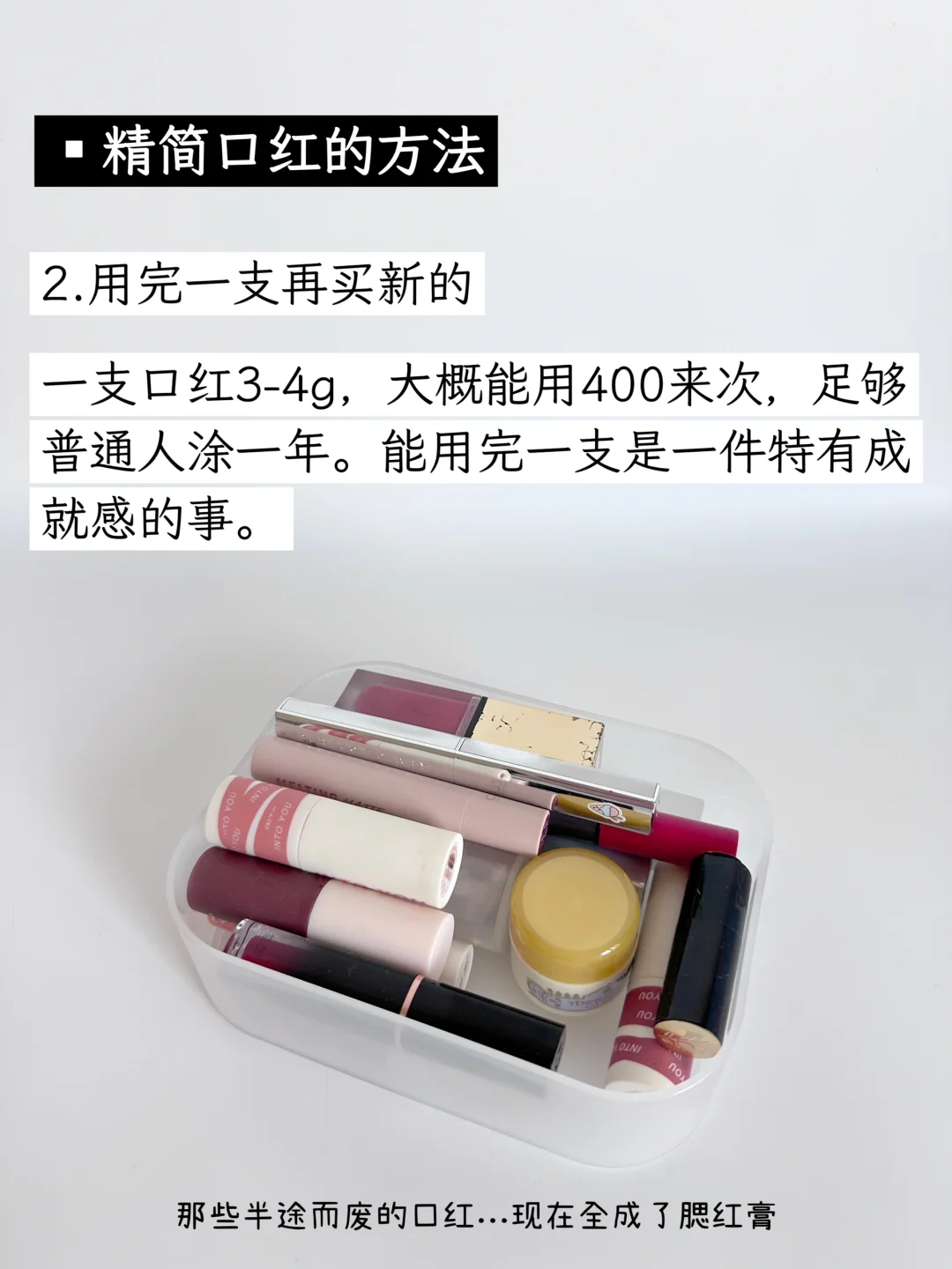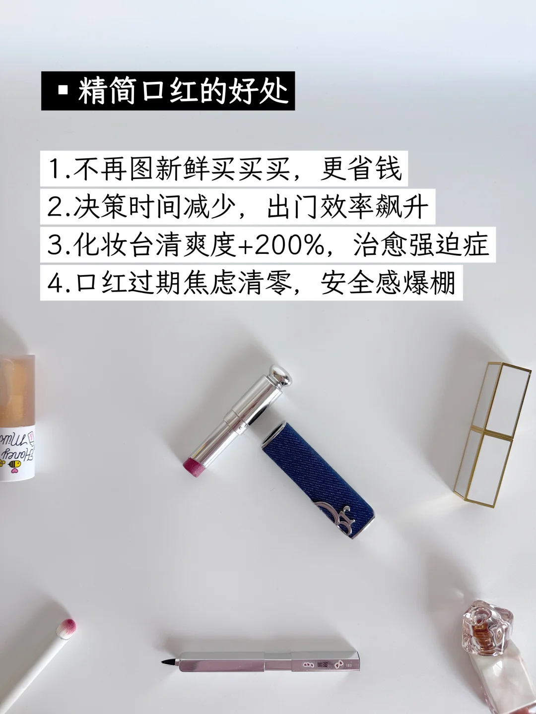 口红断舍离真相↓ 大学时我也痴迷集邮口红,留学那会儿成捆往家搬,朋友送的+自己买的,五颜六色摆满梳妆台。 [蹲后续H]直到极简三年后才发现: ①普通人一年用空1.5支口红(数据来源:《2025美妆消费报告》) ②90%的口红结局:过期→结块→当腮红→进垃圾桶 同事不值得我化全妆,上班有时候只薄涂口红/唇釉,化妆品也已经三四年没有更新了。现在手里的三支口红,好用涂不腻:一支放家里,一支放包里,一支放公司。 [飞吻R]清醒消费宣言↓ “我们只有一张嘴,但资本有100种套路让你买口红” 警惕营销话术: “斩男色”→“换个名字继续卖” “限量版”→“过季就停产” “明星同款”→“上嘴根本不一样” “口红效应”是指因经济低迷而导致口红热卖的一种经济现象,也叫“低价产品偏爱趋势”,一支口红50-300,少买几支能省下可观的一比钱~勿以钱小而不省啊姐妹们! Less is more,「买口红不会让生活变好,但存下的钱会」。跟我一起非必要不买口红、不囤口红~ 我是小哈娜,践行「清醒败家主义」: 善用每一分钱,只买用回本的东西,攒钱体验更大世界。 主页隔天更新极简生活攻略,教你用少物思维过丰盛人生~