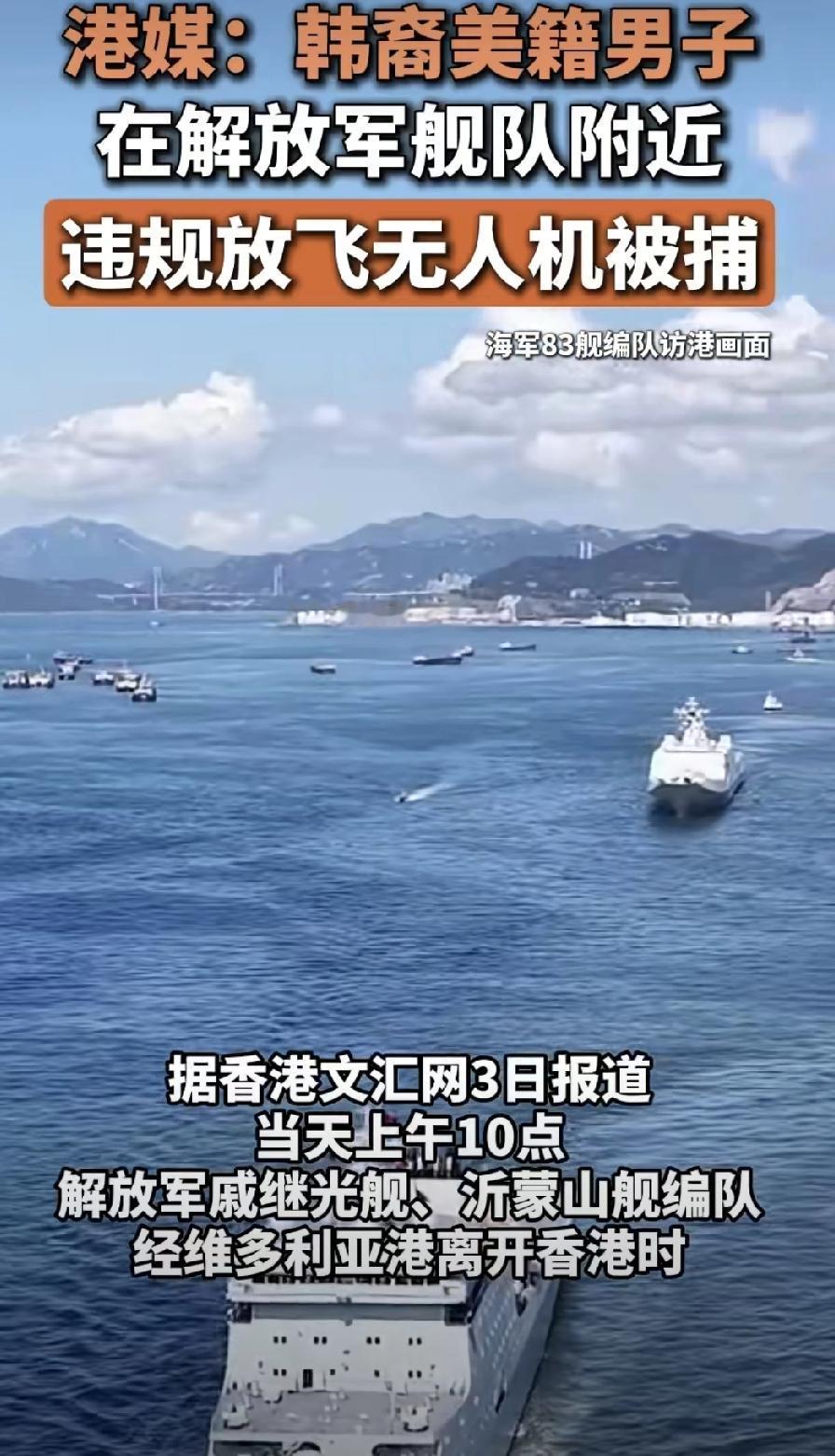 老外在解放军舰队旁边玩无人机,当场被抓! 昨天,香港那边出了个事,一个美籍韩裔