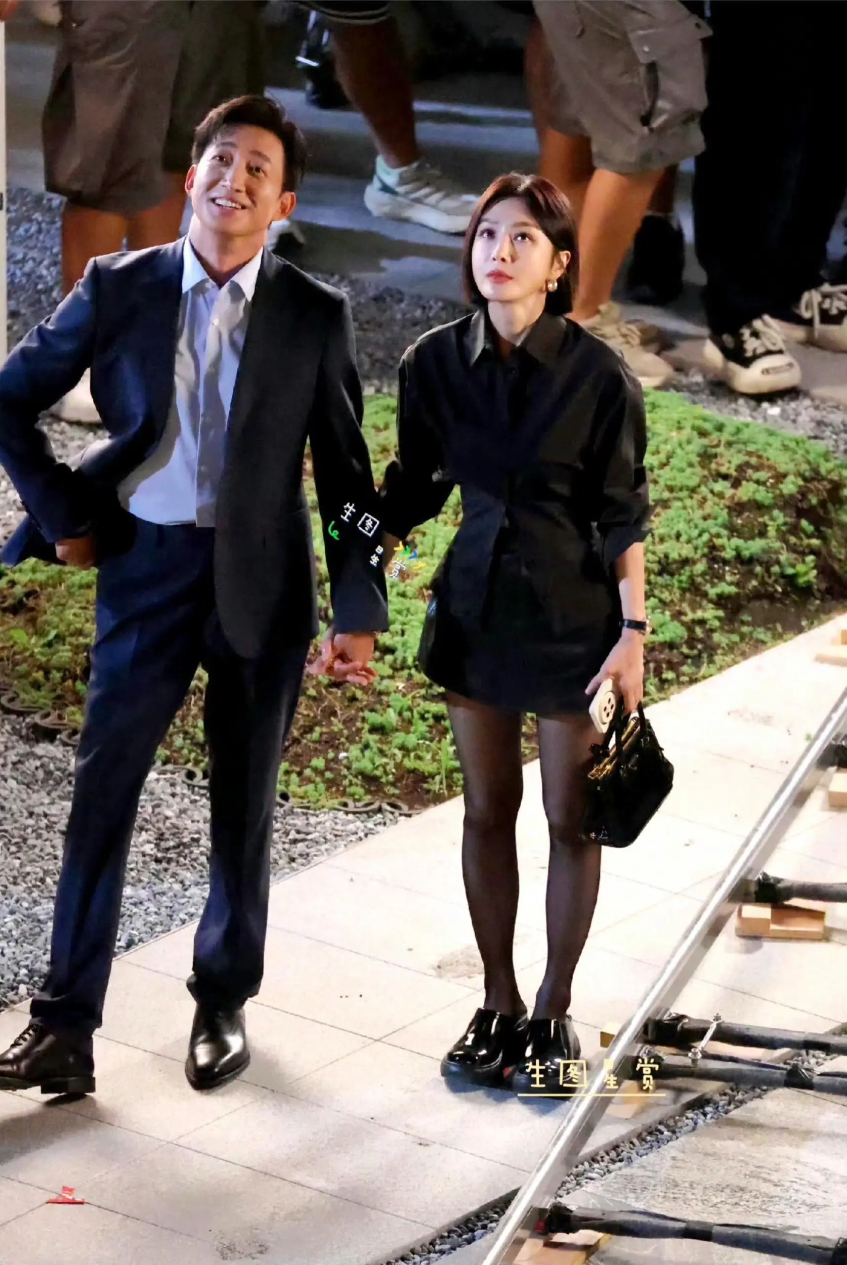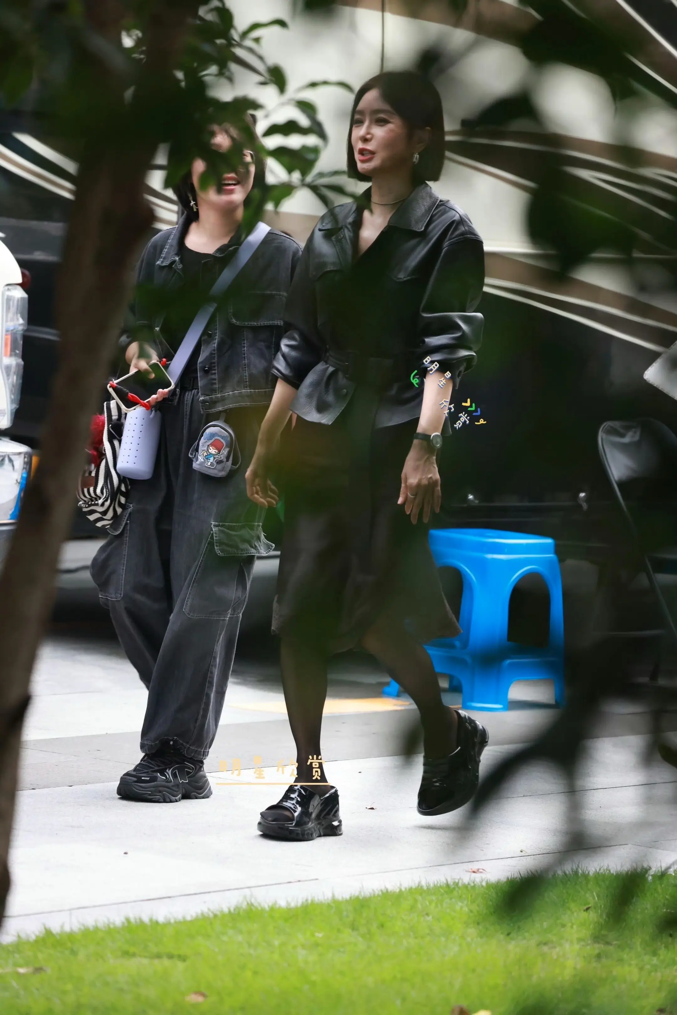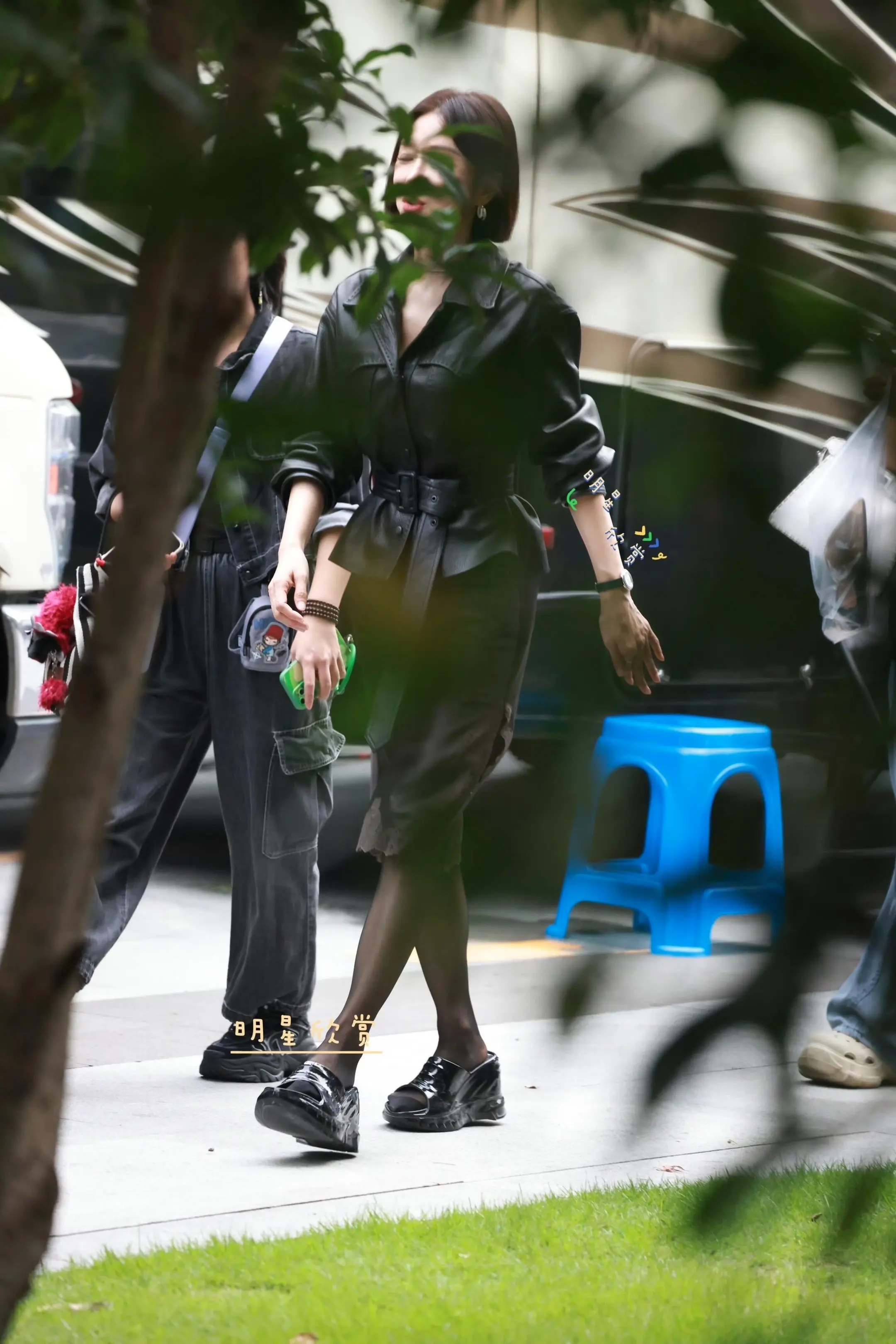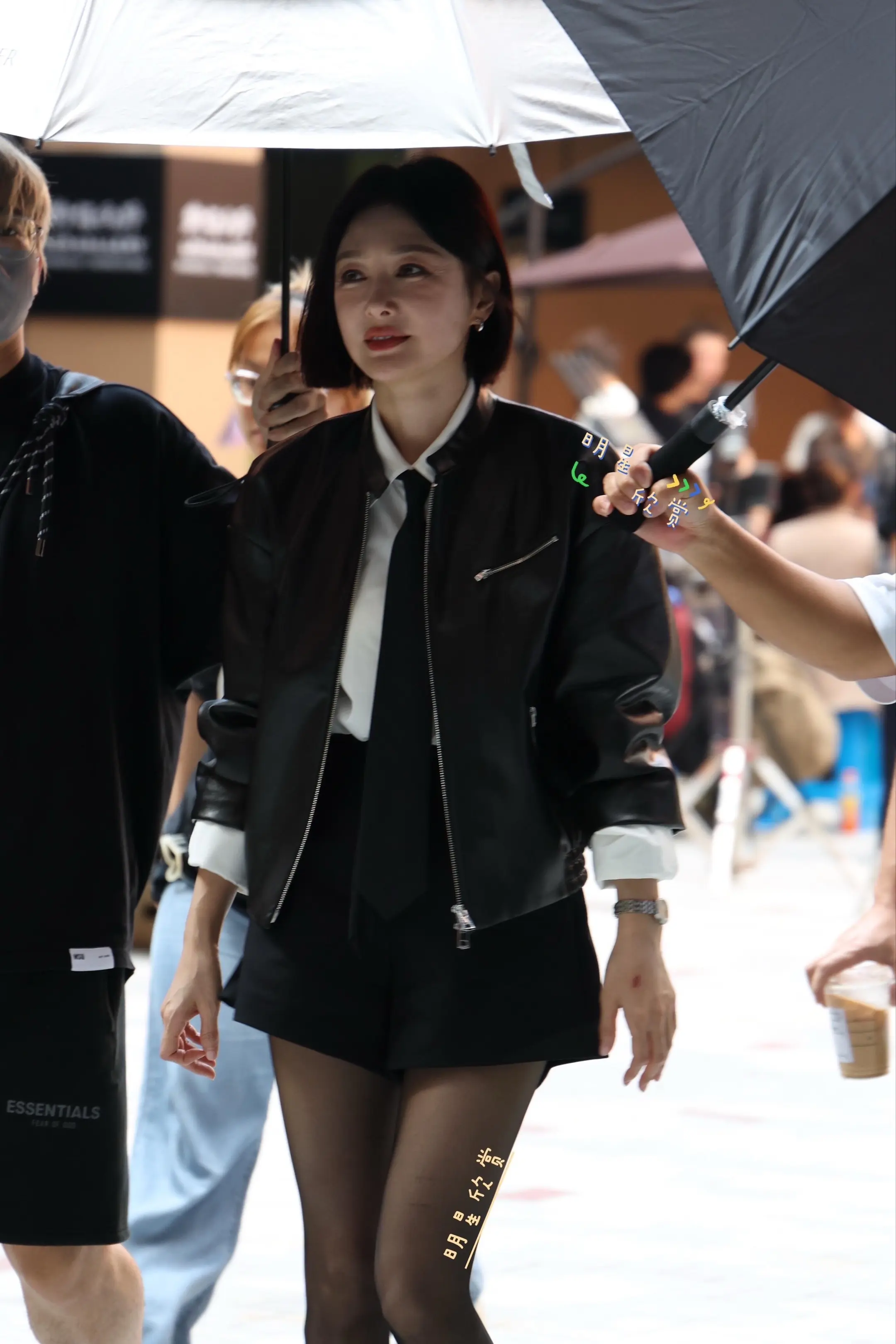 秦岚x新剧《闪耀如她》拍摄路透生图·姐姐是把黑丝焊在腿上了😍