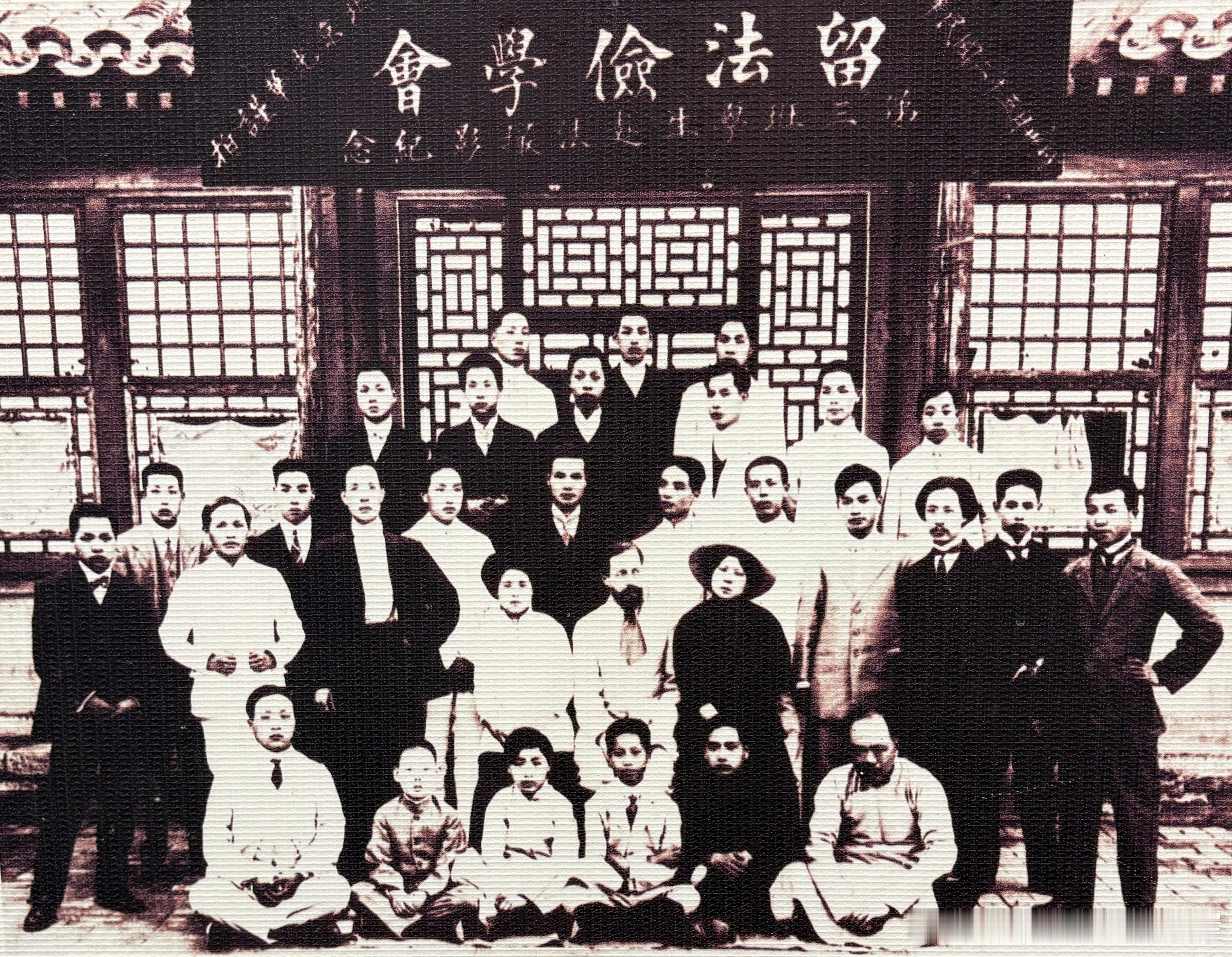 1913年5月30日第三班(第二批)勤工俭学生留法前合影。前排右一吴稚辉、二排右三李石曾历史影像