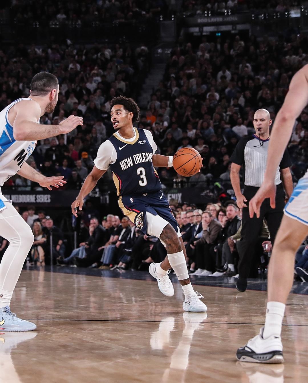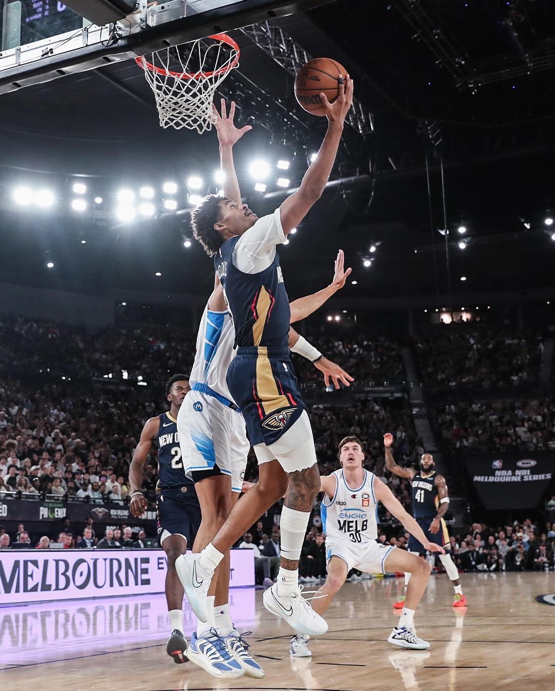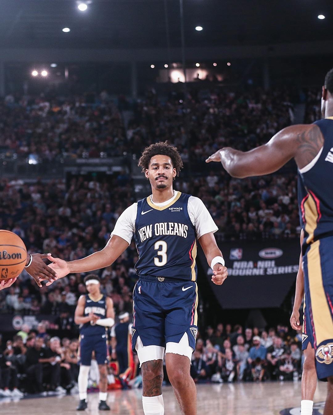 虎扑10月04日讯鹈鹕官方更新Ins,晒出一组鹈鹕球员乔丹-普尔的赛场照与球迷分享。