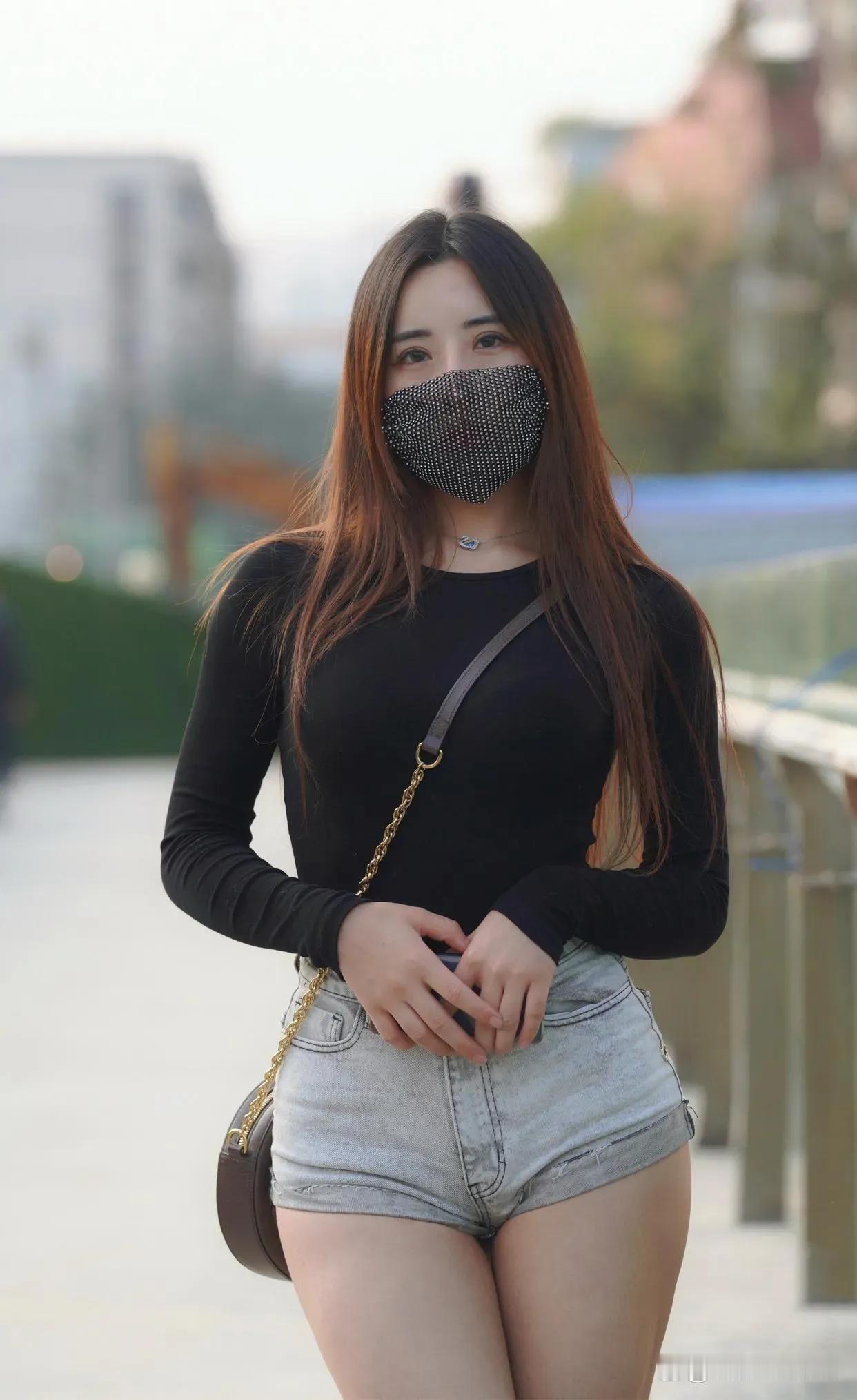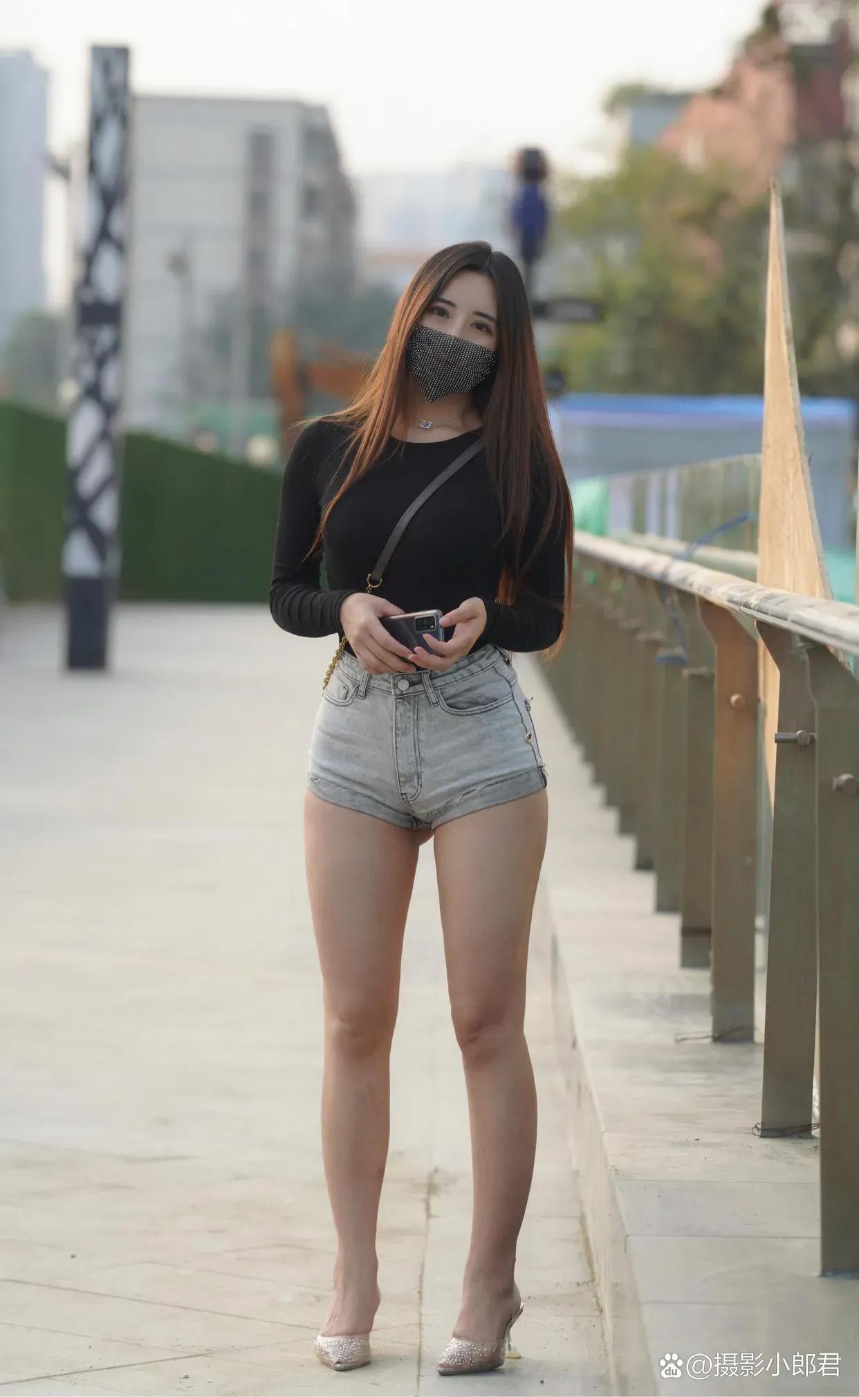 一位穿短裤的女士在街头拍照。你们认为哪些城市的美女最多呢?