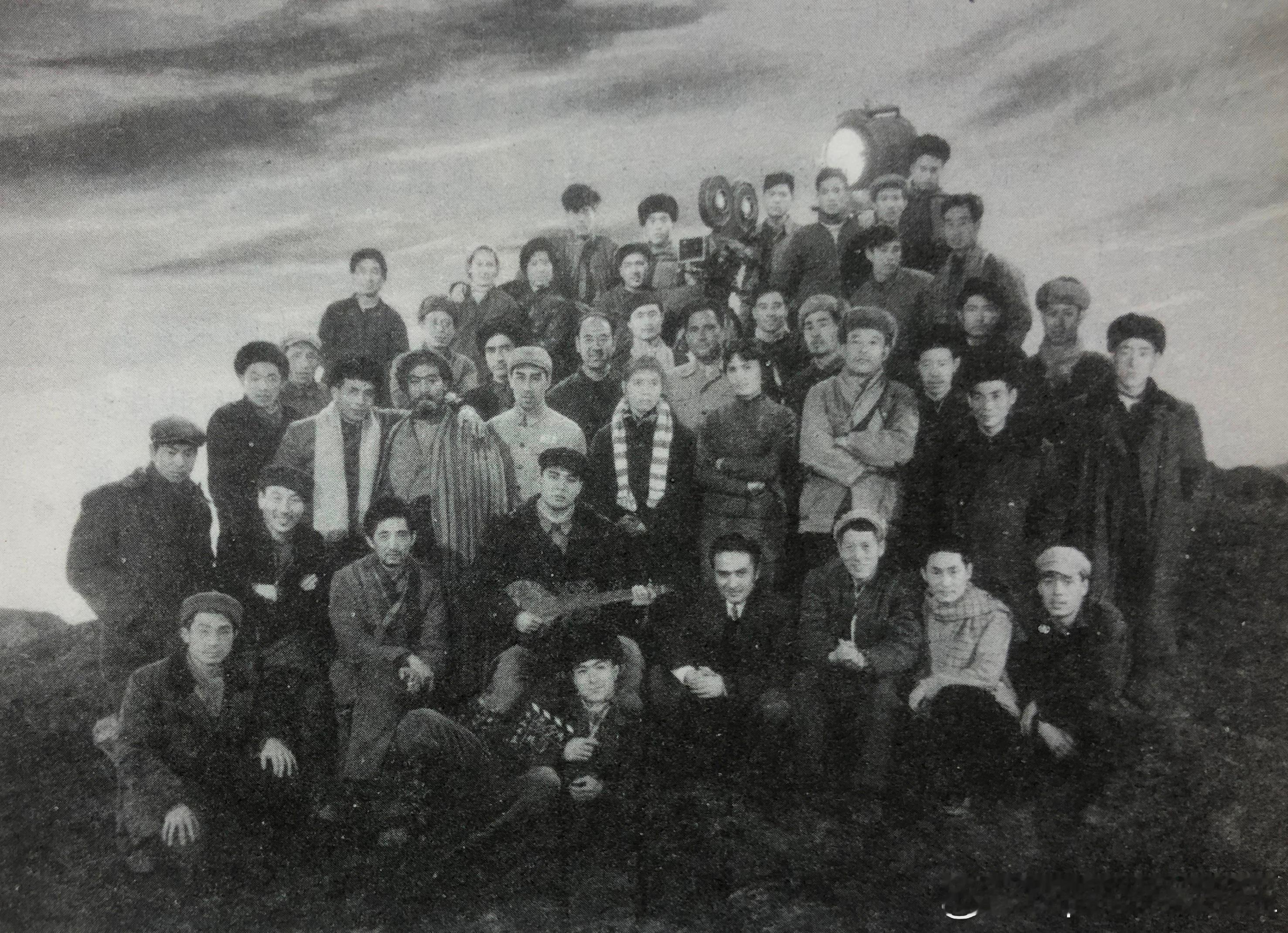 1963年电影《冰山上的来客》摄制组合影。这部电影拍了两次。第二次拍摄时,换了导