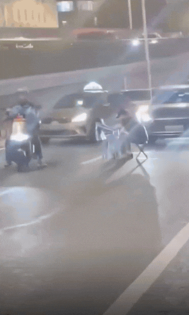 这世道,永远不缺奇葩! 视频中,夜晚的城市主干道车流量很大,可一位男子却端来两