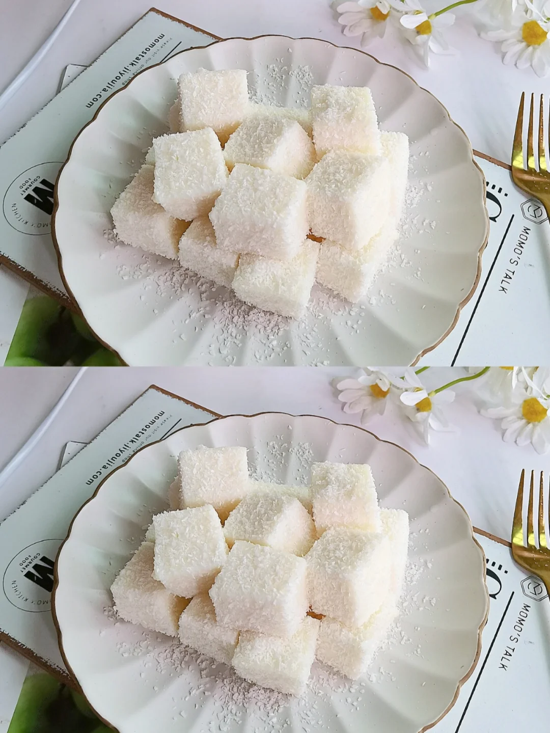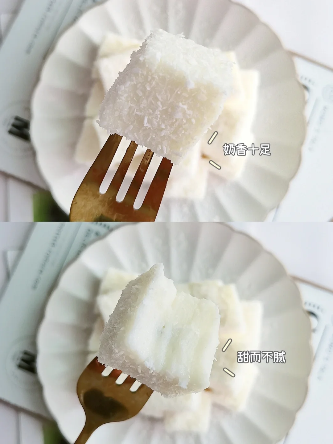 牛奶小方制作简单,吃起来口感入口即化,软绵香甜,奶香浓郁,下午茶必备小甜品,一起来试试吧!✌️