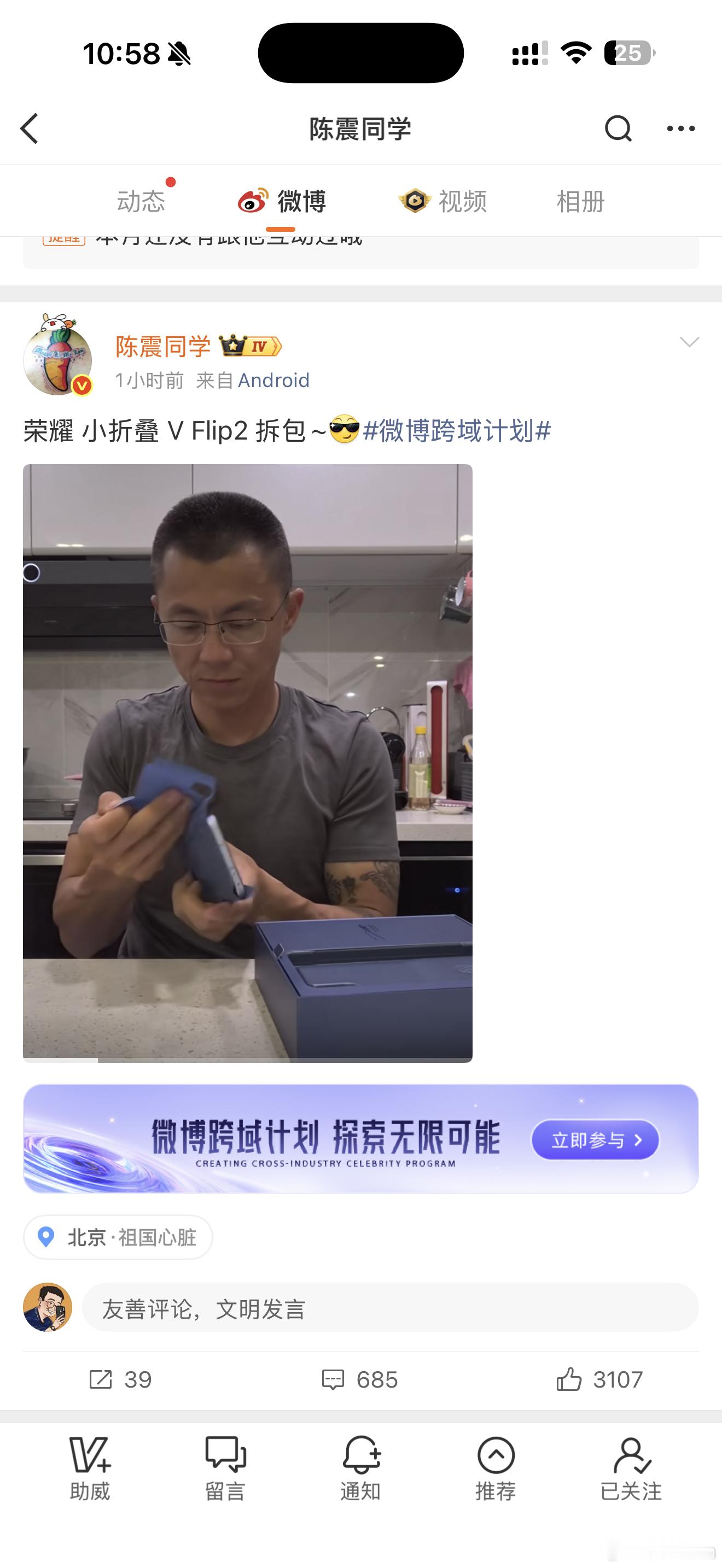 他不紧不慢定时发了一个荣耀小折叠的开箱