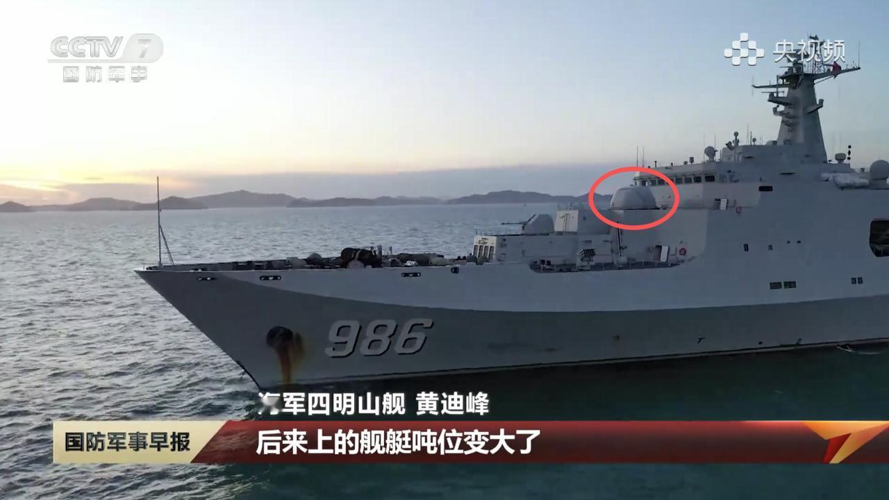 986“四明山”舰的“燎原-1”激光武器正式亮相,安装在主炮后方的副炮位上,多了