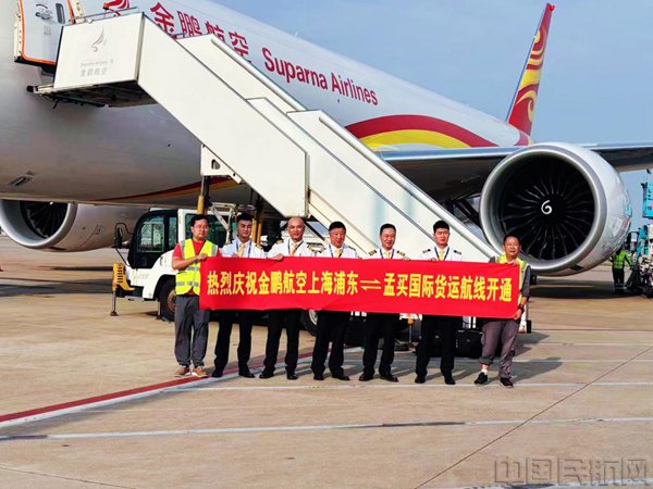 《中国民航报》、中国民航网记者胡夕姮通讯员刘国琦报道:10月2日17时25分,金鹏航空Y87441航班满载近100吨货物,从上海浦东国际机场起飞,直航印度孟买贾特拉帕蒂·希瓦吉国际机场。这是金鹏航空开通的首个飞往印度的国际货运航班,由其新引进的首架波音777F全货机(注册号B-227U)执飞。航班搭载的货物涵盖生活用品、工业产品等多个品类。