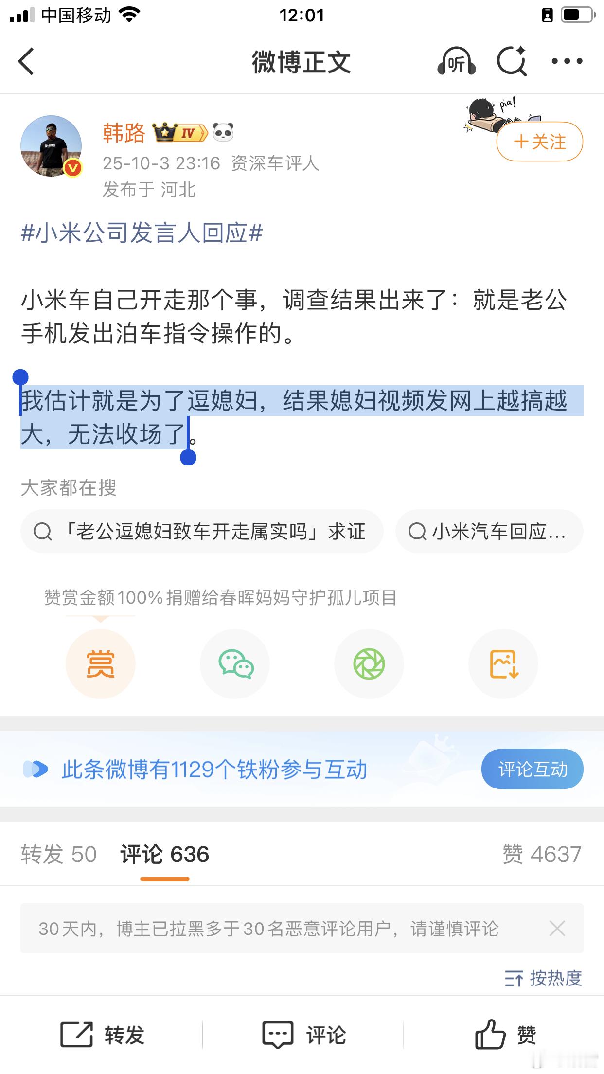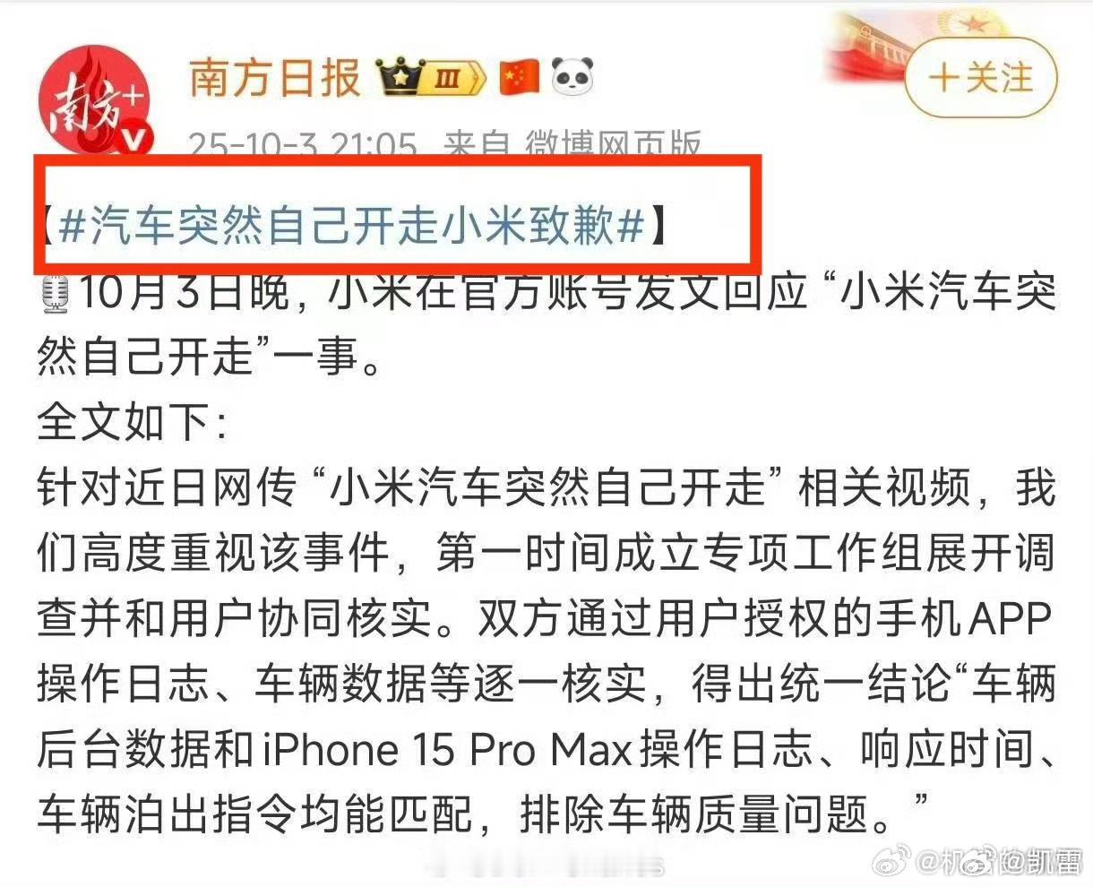 「小米汽车自己走」这件事破案了。图片是官宣内容。有趣的事来了:导致车辆激活泊