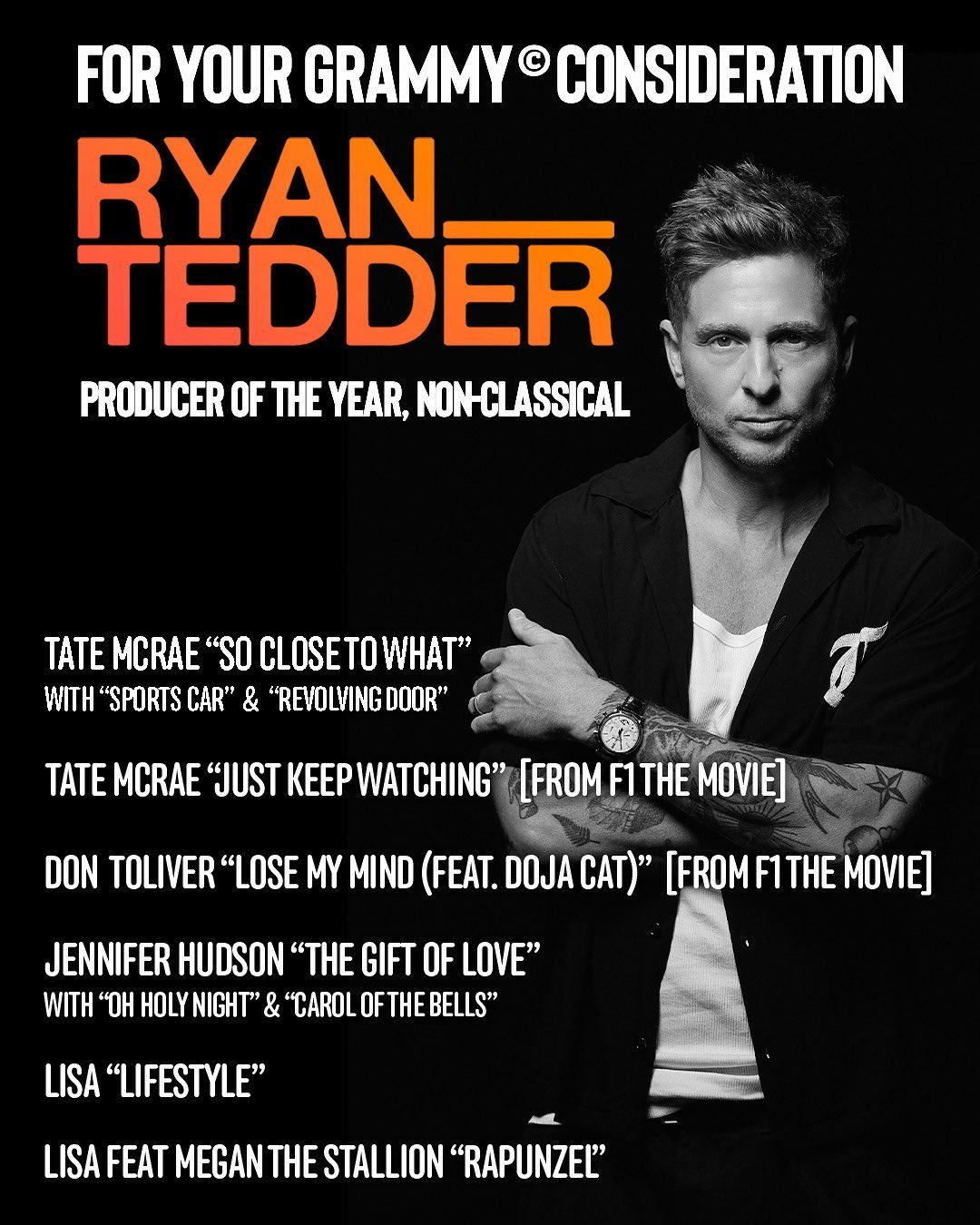 RyanTedder在申报2026年格莱美年度非古典类制作人奖项时,将LISA