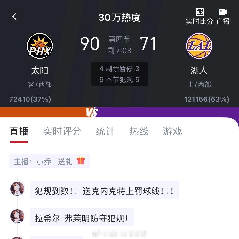 比对手多16个罚球,场上落后19分…湖人的比赛还是老味道[无聊]太阳vs湖人全擎