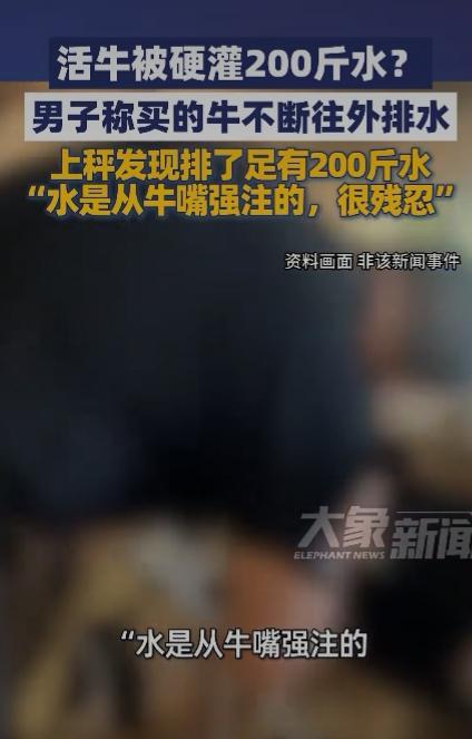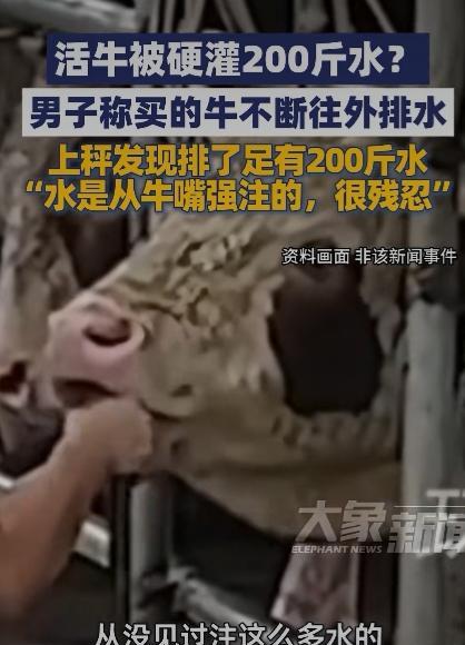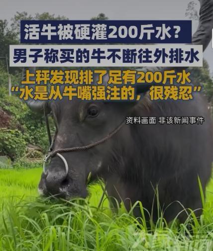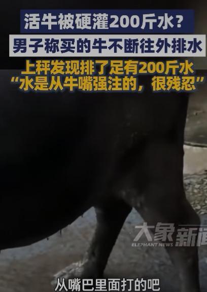 心太黑了这些无良商贩!牛被活生生硬灌了200斤水,广西钦州,一男子称自己买的牛不断向外排水,上称一称发现排了足足少了200斤,男子爆料:水是从牛嘴里强灌的,太残忍! 来源:大象新闻 据说有的不良商贩甚至用高压水枪给牛硬性注水,堪称惨绝人寰。 有网友说山西当地有一家酒馆,名叫“鲈香馆”,酒馆烹制的驴肉最为香美,远近闻名前来喝酒吃肉的食客络绎不绝。 该店有一种极其残忍的烹制方法,他们会先将一头草驴饲养得极为肥壮。 然后用酒将它灌醉,再用板子全身拍打,使驴皮下充血。 接着在地上钉四根木桩,把驴的四条腿捆住,用一根巨大的木头横压在驴背上,并系住驴的头尾,让它动弹不得。 之后先用滚烫的开水浇在驴身上,把毛刮干净,再用锋利的刀根据客人的需求,零割驴身上的肉。 无论是腿肉、肚子肉、脊背上的肉还是驴头驴尾肉,都随客人自便。 当客人下筷子时,那驴还没有完全死绝。 这种残忍的做法一直延续了十多年,直到乾隆年间,山西布政使,听说了这件事,于是命令地方官员查办捉拿。 才知道从事这一行的有十多人。 最后援引谋财害命的条款,将带头的人斩首,其他人都发配到边远地区充军,并发布禁令刻石立碑,永远禁止这种残忍的做法,听说此事的人都拍手称快。 那现在这种给活牛注水的人,发现之后重罚,一斤按照10万去处罚。 我相信没有哪个牛贩子敢再注水去祸害可怜的牛了吧。 俗话说:人在做,天在看! 人生在世不要作孽太多,会有因果的,有句话叫做:“种其因者,须食其果!” 从来只听说过注水牛肉,还是第一次听到注水活牛! 简直是坏的没底线了! 之前看过给猪给牛注水,给鸡鸭灌粮食,直接硬灌,猪和牛直接插管,相当残忍。 都说万物有灵,如此残忍,难道就一点也不担心会有因果报应吗? 赚钱固然重要,但君子爱财,取之有道,如此伤天害理,天理难容,必须重罚呢、重判,才能遏制这种恶劣的行为。 大家对此事怎么看待呢? #男子称买回一活牛排出200斤水让你有何感触# 感谢评论,点赞,转发,谢谢阅读。