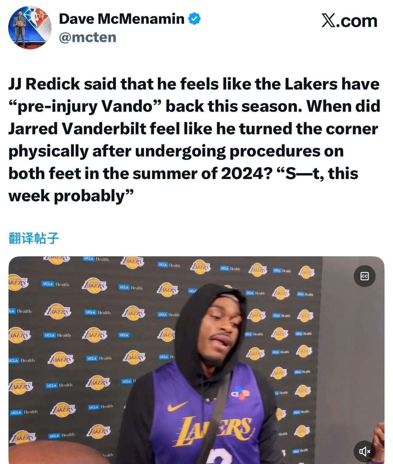 范德彪这防守很久没见到了,球星杀手再次回归! 季前赛湖人打太阳,范德比尔特高位紧逼德文布克,最终造成布克运气失误。这是健康的范德彪一贯的防守水平,死掐对方持球手。可惜前两个赛季他在湖人饱受伤病困扰,湖人主教练雷迪克表示新赛季范德彪已经彻底摆脱了伤病,将会在防守端扮演更大的角色。 如今的湖人太缺这样的防守了,范德彪+斯玛特,这样的防守大闸坐镇,湖人的防守不会差。