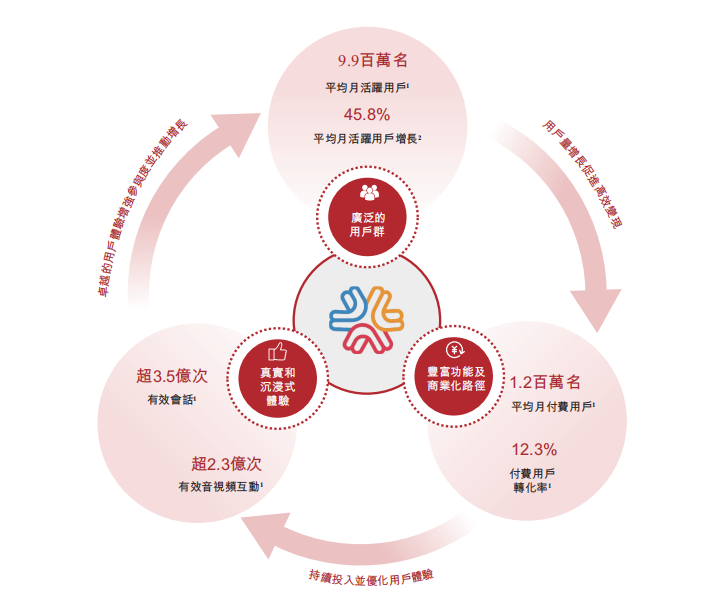 贴贴:于2022年推出,是一款语音社交应用产品,专为中国大陆18至30岁之间、寻求基于共同兴趣的连接和互动的用户而设计。截至2025年6月30日止六个月,贴贴的平均月活跃用户达1.7百万名,七日留存率为43.0%。