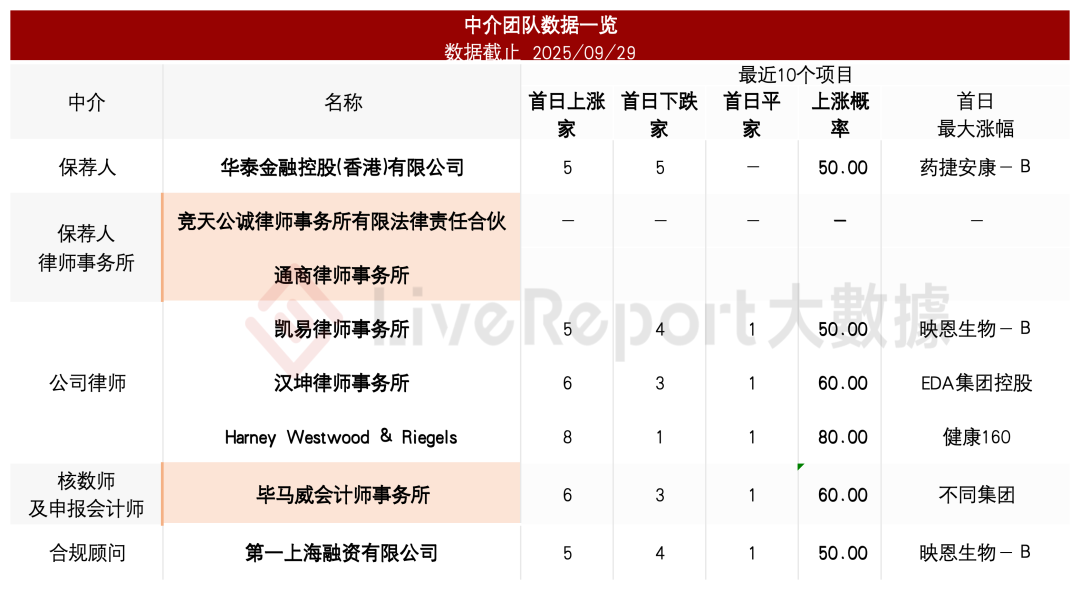 据LiveReport大数据统计,米连科技中介团队共计8家,其中保荐人1家,保荐项目数据表现不足;公司律师3家,综合项目数据整体不尽如意。整体而言中介团队历史数据整体表现不足。