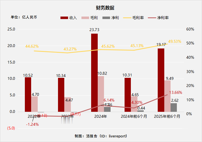 收入分别约为人民币10.52亿元、10.34亿元、23.73亿元、10.31亿元及19.17亿元,年复合增长率为50.15%;